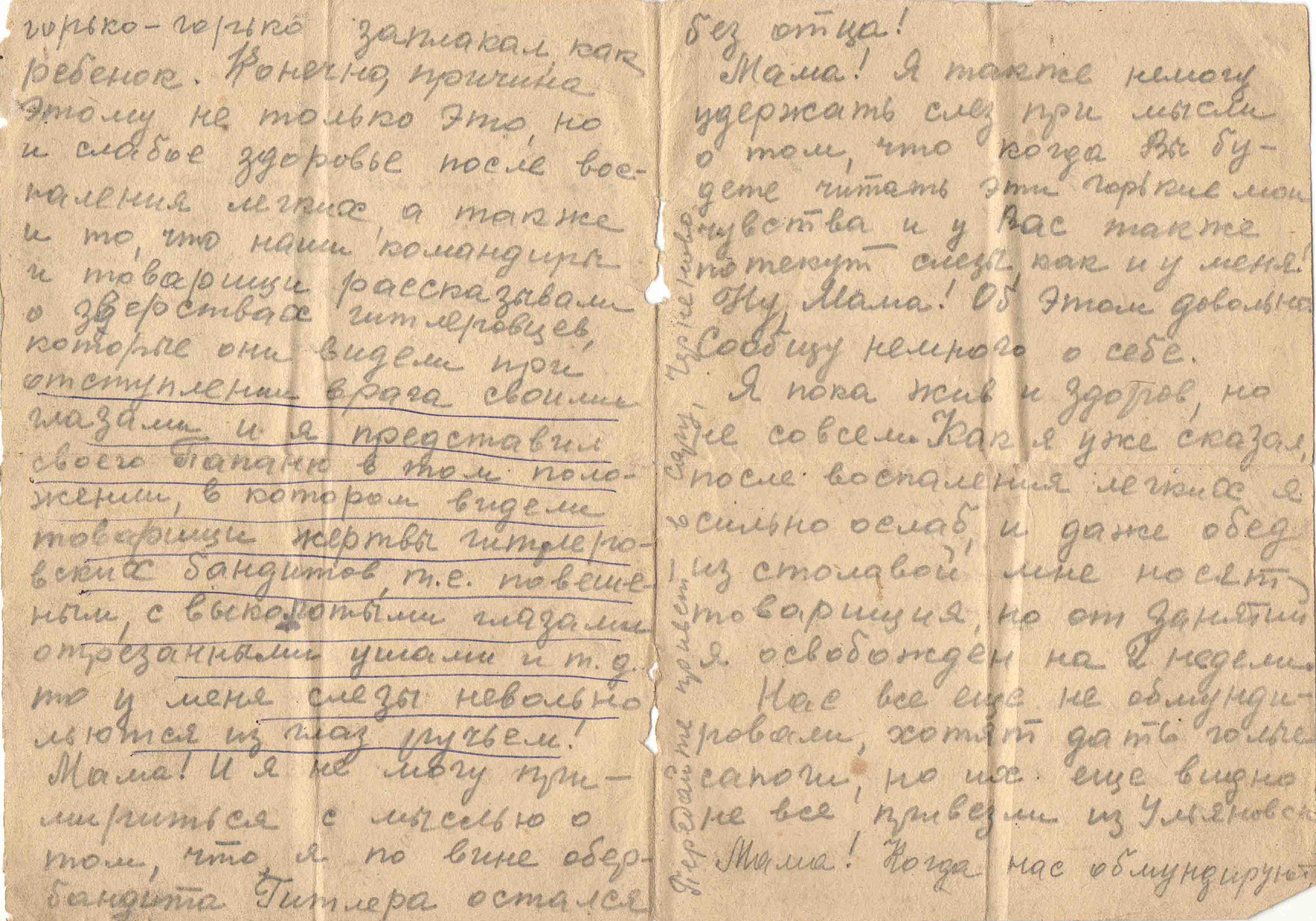 Со слов сестры Р.Ф. Бухминой: «Мама сохранила фронтовые письма от сына – 14 штук. Из писем моего брата: