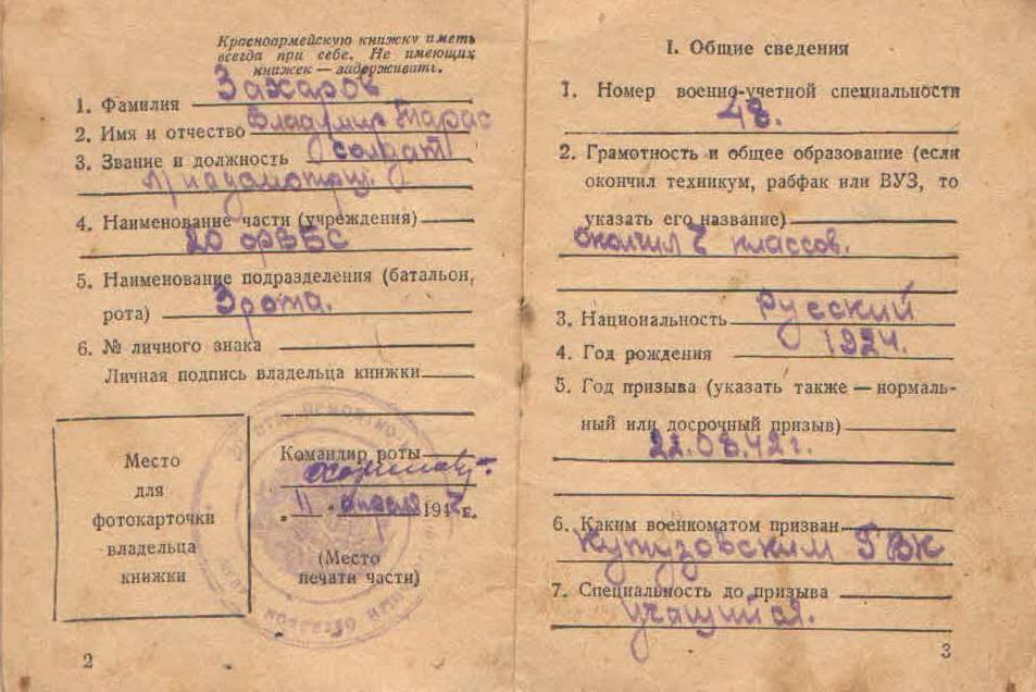 Из семейного архива Захарова Н.А., село Залесье Кошкинского района Самарской области