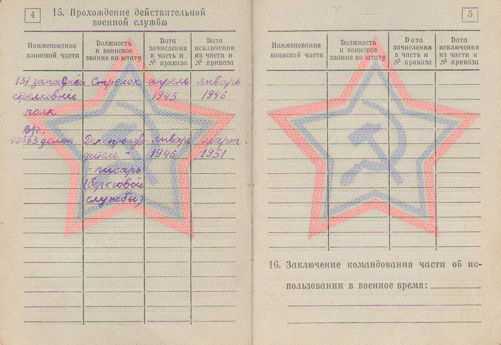 Павел Сергеевич служил стрелком в 137-м запасном стрелковом полку, затем в январе 1946 г. был переведен в Военно-морской флот и назначен делопроизводителем береговой службы. На флоте служил до марта 1951 г. Вышел в отставку в звании старшины.