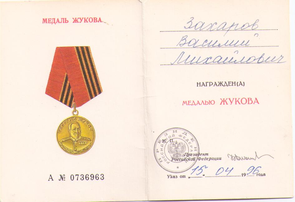 Захаров Василий Михайлович родился в 1926 году. Маленького Васю вместе со всем большим семейством его отец, к слову, отличнейший плотник, перевёз из Пензенской области в Самарскую в 1936 году. Василий учился в Сколковской школе, демонстрировал хорошие знания. Начал работать в местном колхозе, а потом началась Великая Отечественная война. В селе остались женщины и дети, которым приходилось работать за троих. Сеяли, пахали, собирали урожай. На фронт Захарова Василия Михайловича призвали в 1943 году. Попал он на Дальний Восток. Служил в разведывательной части при артиллерийских войсках в городе Ворошилов (сейчас это город Уссурийск). На передовой побывать не пришлось. С военнослужащими вели серьезную боевую подготовку: знакомили с боевым вооружением и тактикой действий японских войск, чтобы советские солдаты были готовы отразить нападение. К окончанию войны на Дальнем Востоке были собраны колоссальные силы. Захаров Василий Михайлович возглавил отделение в звании сержанта. По окончании сверхсрочной службы Захаров Василий Михайлович вернулся в село Сколково. Продолжил работать в колхозе, женился, родились два сына. В селе Сколково Захаров Василий Михайлович к 70-летию Великой Победы оставался единственным здравствующим участником Великой Отечественной войны.