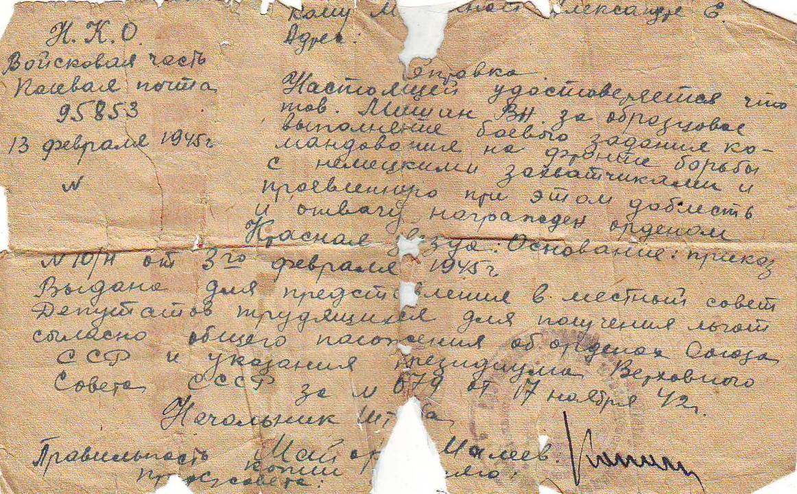 Материал из семейного архива предоставлен племянницей, Мишиной Любовью Павловной, село Кротково Похвистневского района Самарской области