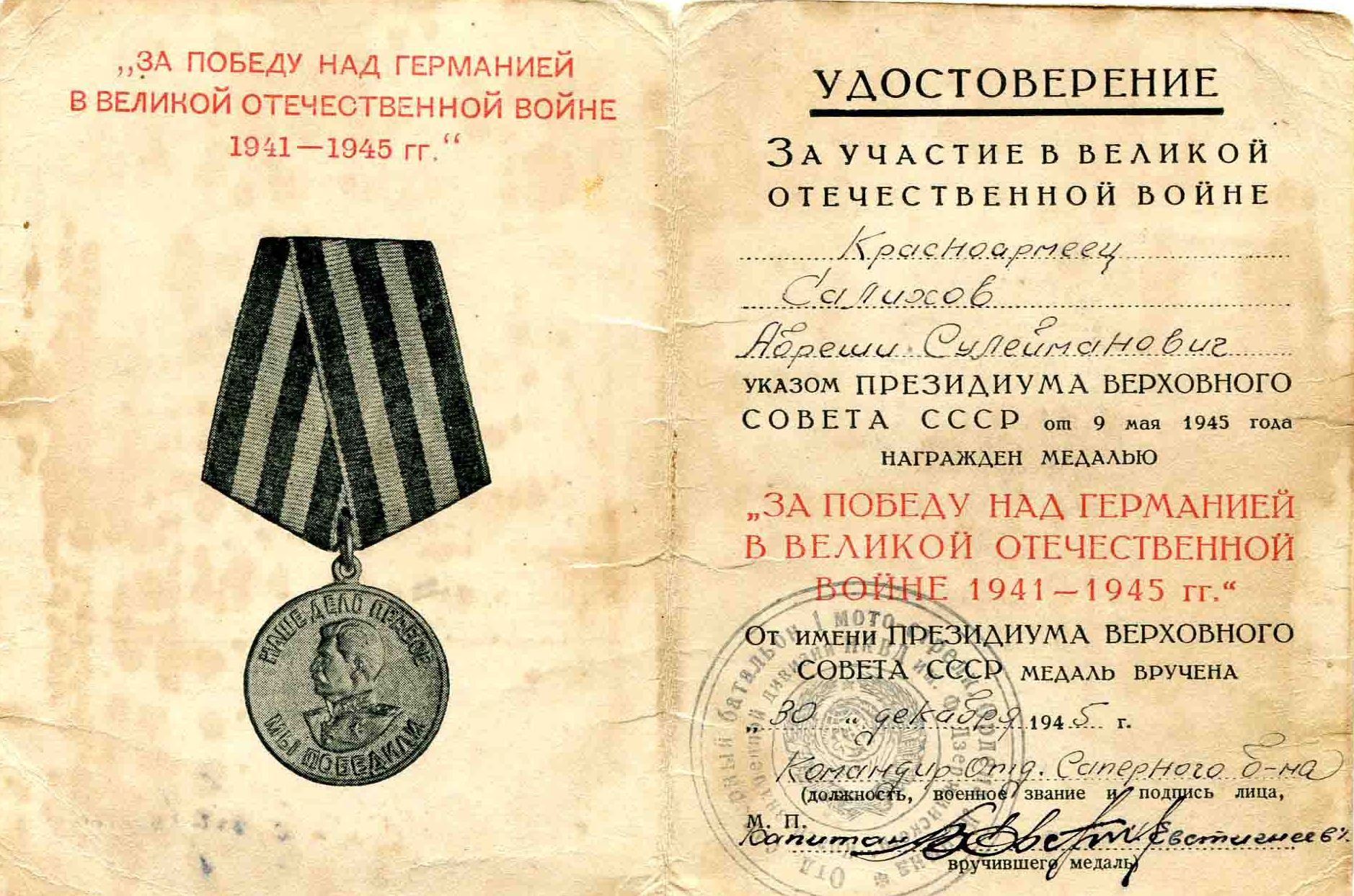 Абдряшит Сулейманович был награжден медалями «За оборону Москвы», «За Победу над Германией в Великой Отечественной войне 1941–1945 гг.», юбилейными медалями «В память 800-летия Москвы», «30 лет Советской армии и флота».