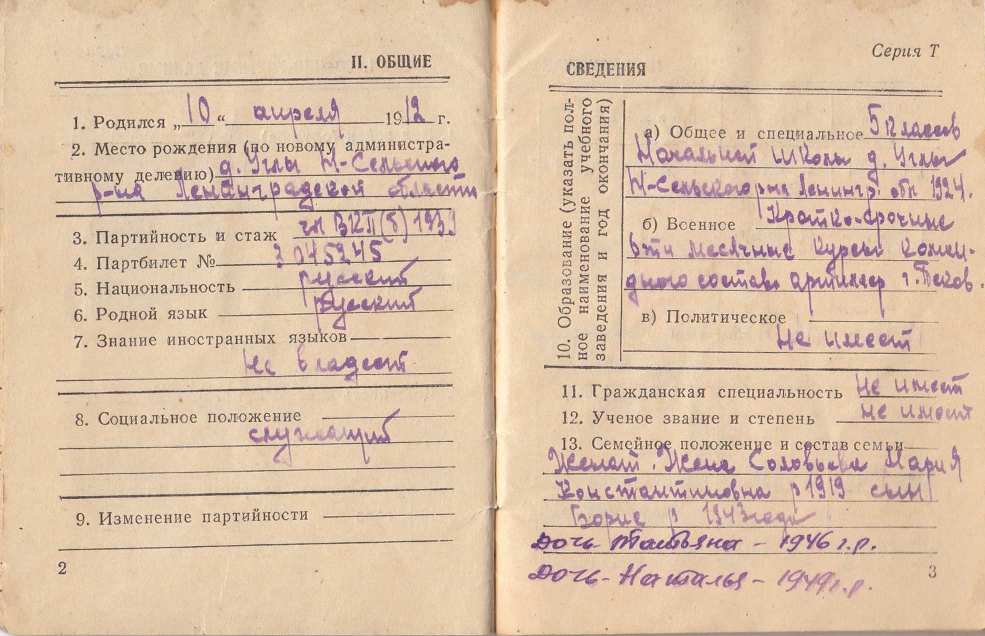 Иван Васильевич Соловьев родился 10 апреля 1912 года, уроженец Ленинградской области.