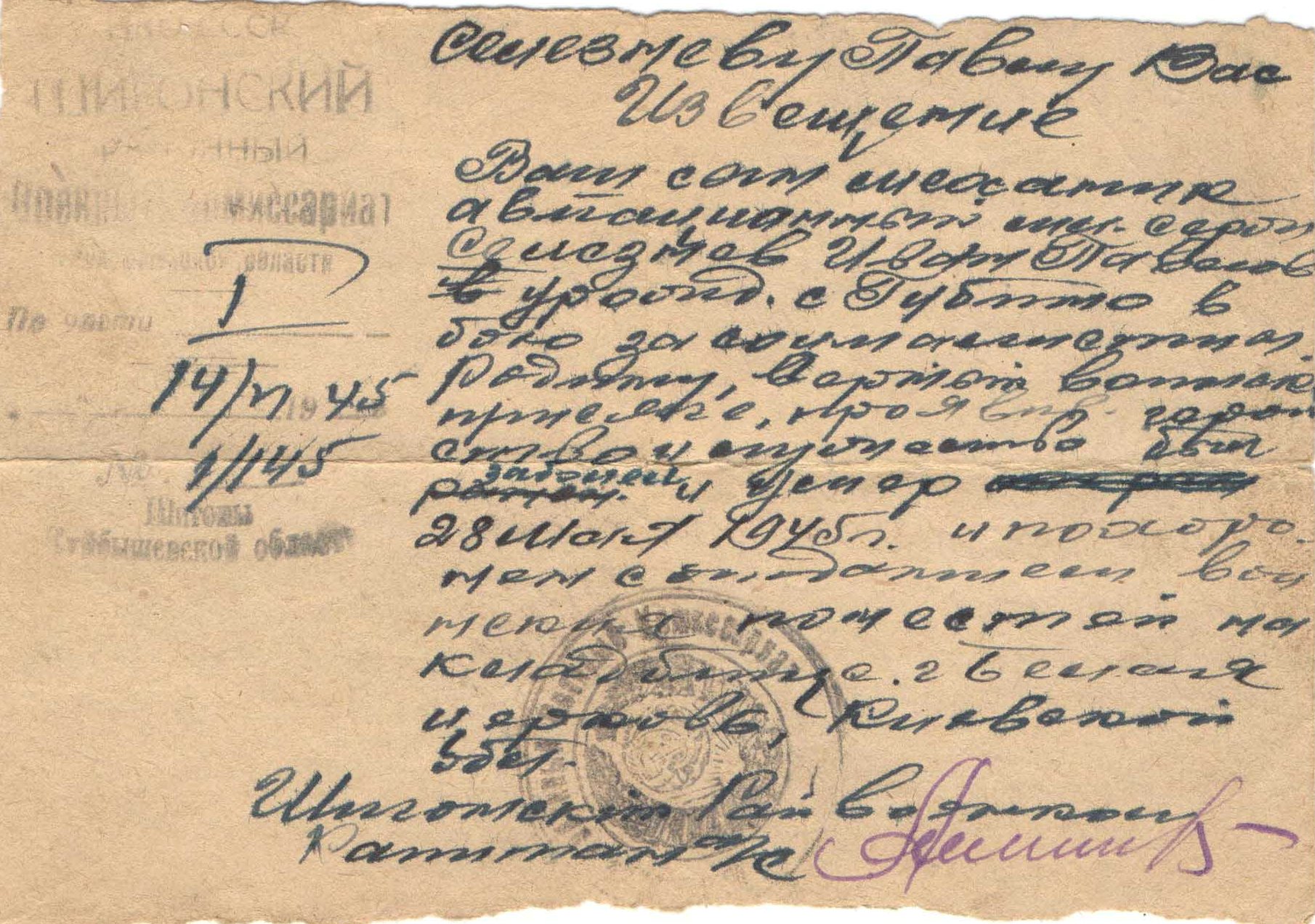 Из семейного архива внучатой племянницы Ирины Анатольевны Попковой, г. Сызрань Самарской области