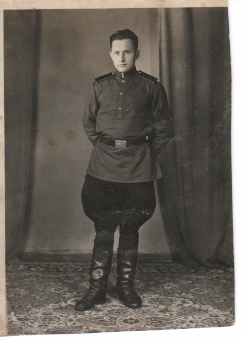 Призван на фронт в феврале 1943 г. Безенчукским РВК Куйбышевской области. В боях с марта 1945 г. В мае 1945 г. служил в звании гвардии рядовой, в должности шофер парковой батареи 30-й гвардейской армейской пушечной артиллерийской Пражской Краснознаменной орденов Кутузова и Суворова бригады на 1-м Белорусском фронте.
