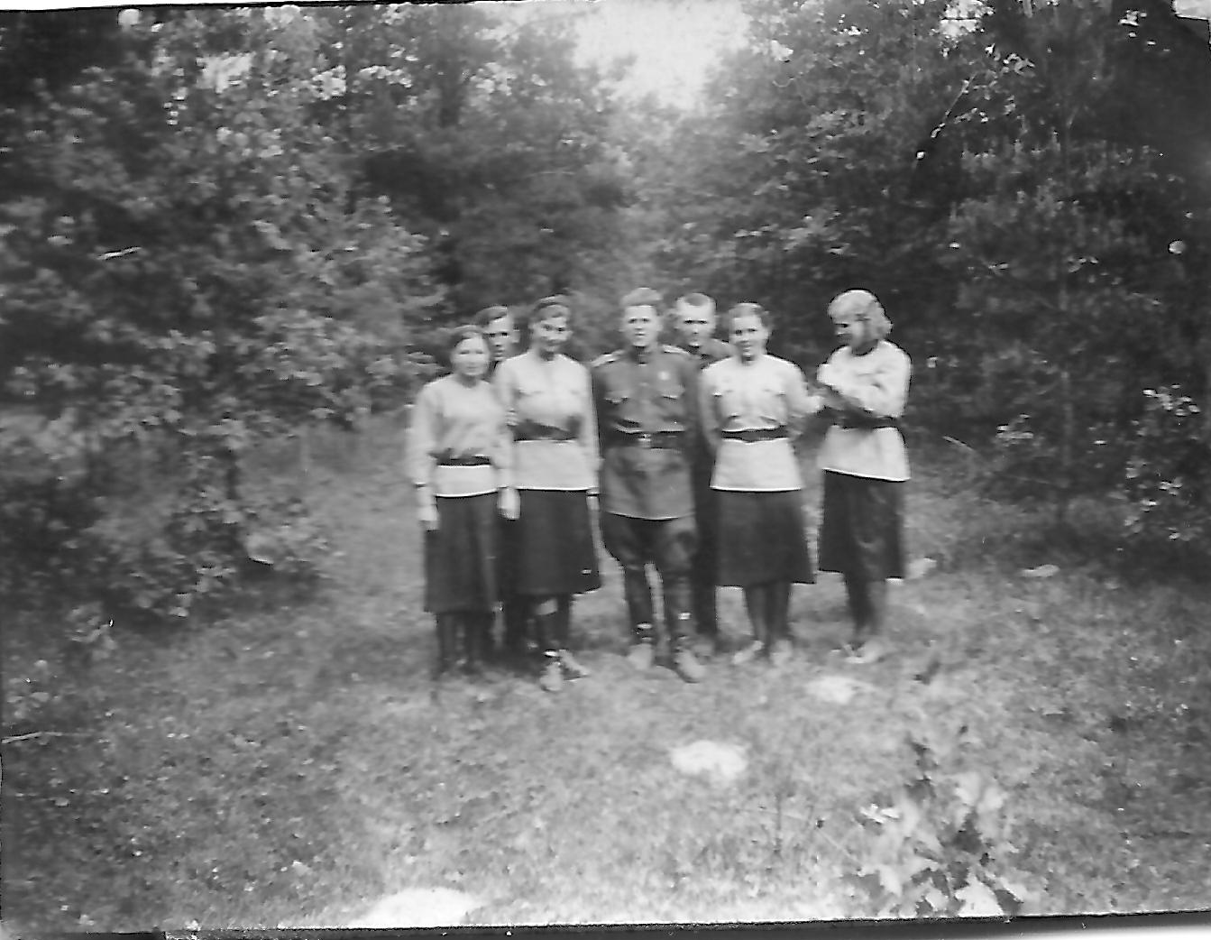 Родилась в 1918 г. в с. Козьяны Витебской области. Начало войны молодая медсестра встретила в г. Донецк 23 июня 1941 г. Местом службы стал эвакогоспиталь №1049, расположенный в г. Славянск. В 20 лет Клава воочию узнала ужасы войны, страдания и боль раненых. Еще в Славянске Клавдия Кирилловна дважды встречалась с Иваном Сергеевым. Хотя вначале она вряд ли предполагала, что Иван станет ее супругом. А по-настоящему они встретились в госпитале в г. Минск в 1944 г., когда Иван Михайлович, будучи раненым, находился на излечении. Расписались они 19 января 1946 г. После войны с. Красный Яр стало их постоянным местом жительства, где они вырастили и воспитали своих детей. Умерла в 2007 г.