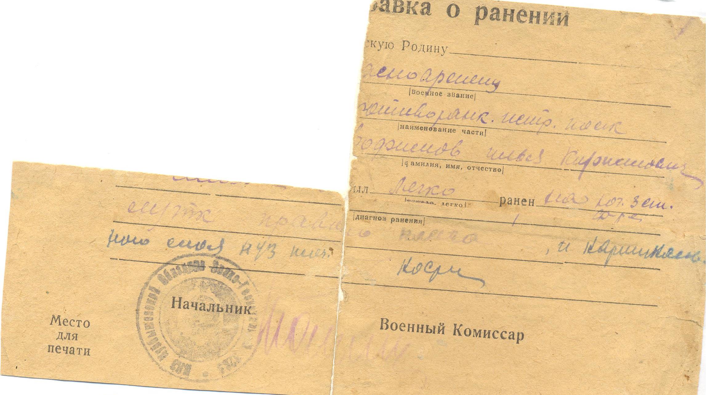 Родился 10 ноября 1922 г. в с. Багана Шенталинского района. Призван на фронт в августе 1941 г. Шенталинским РВК. Был два раза ранен. Участвовал в освобождении Румынии. На ноябрь 1944 г. служил в звании рядовой, в должности повозочный 506-го отдельного батальона связи. Инвалид. Демобилизован 10 ноября 1945 г. Умер в 1993 г. Награды: медаль «За боевые заслуги», медаль «За победу над Германией в Великой Отечественной войне 1941-1945 гг.», орден Отечественной войны I степени.