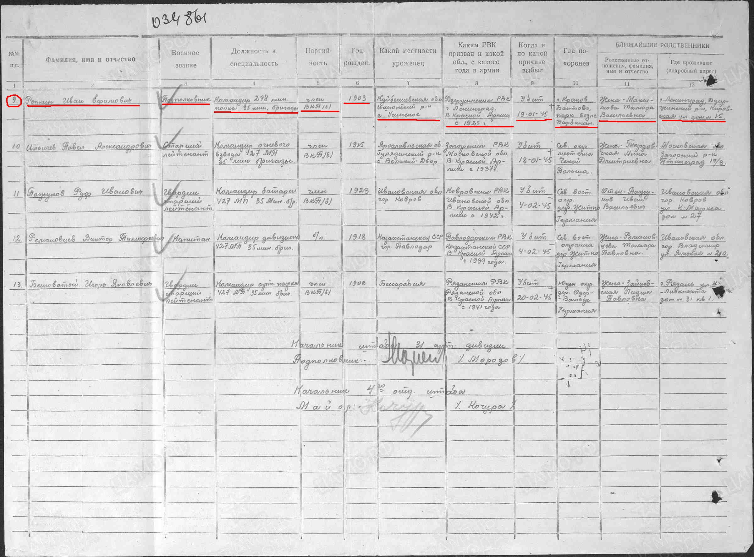 Убит в бою 19 января 1945 г. Похоронен в парке г. Краков близ памятника Барбакан.