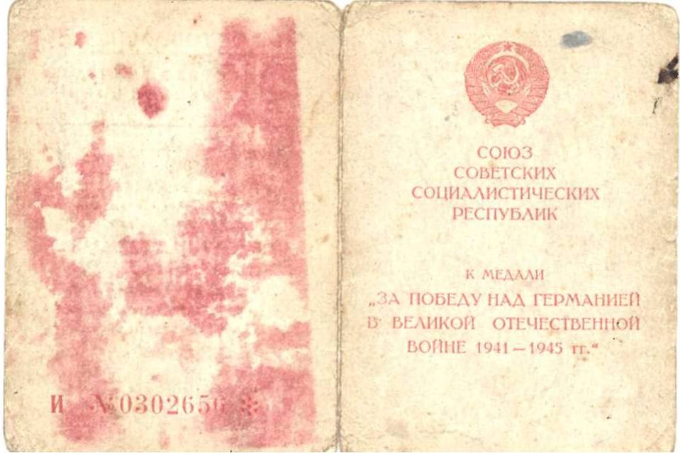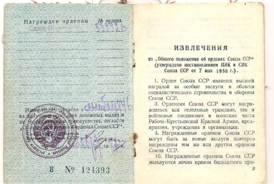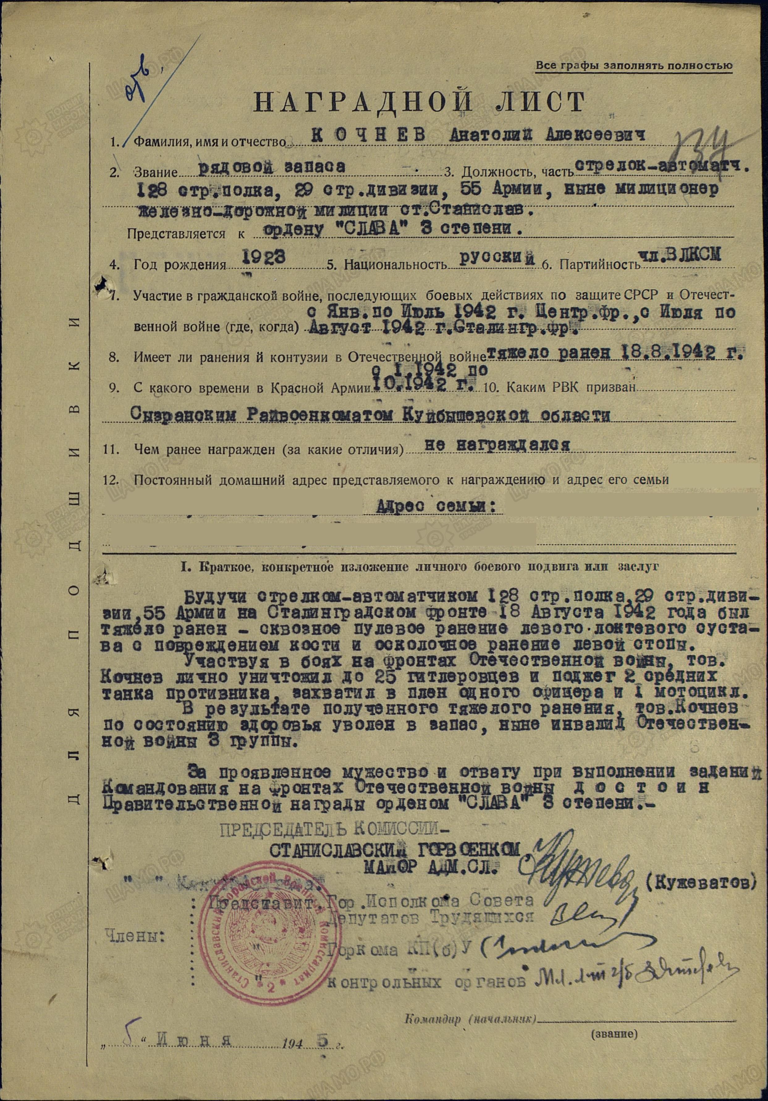 Наградной лист: