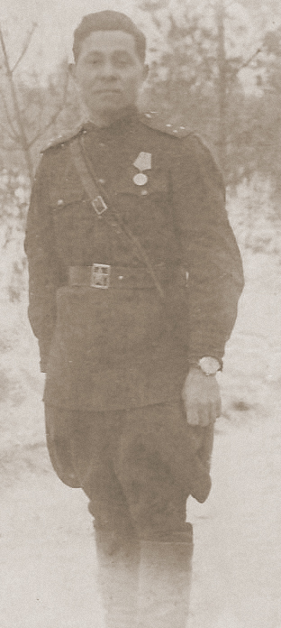 Родился в 1906 г в с. Балыкла Камышлинского района Куйбышевской области в семье крестьянина. Война застала в Тоцком лагере, куда был мобилизован перед войной. Оттуда направлен в г. Мелекесс на трехмесячные курсы политработников, по окончании которых назначен заместителем командира батальона по политчасти. Воевал на Волховском фронте. Когда был убит комбат – назначен вместо него. Принимал участие в прорыве обороны немцев и освобождении крупнейшего леспромхоза. Был ранен с контузией. Два с половиной месяца находился в госпитале в г. Иваново.