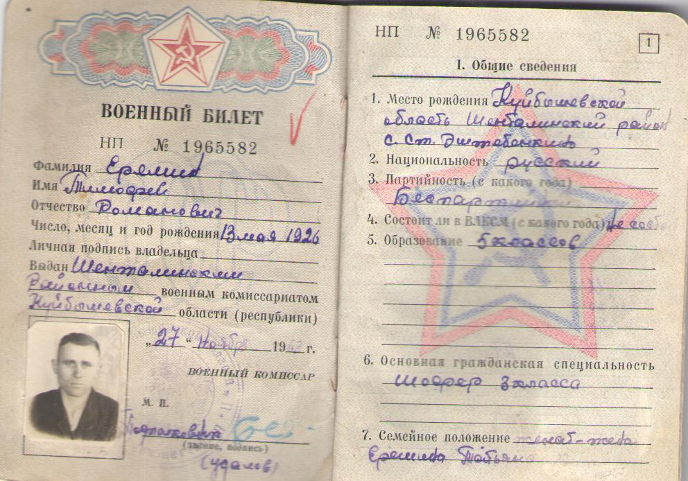 Из семейного архива дочери Надежды Тимофеевны Ерёминой, с. Челно-Вершины Челно-Вершинского района Самарской области