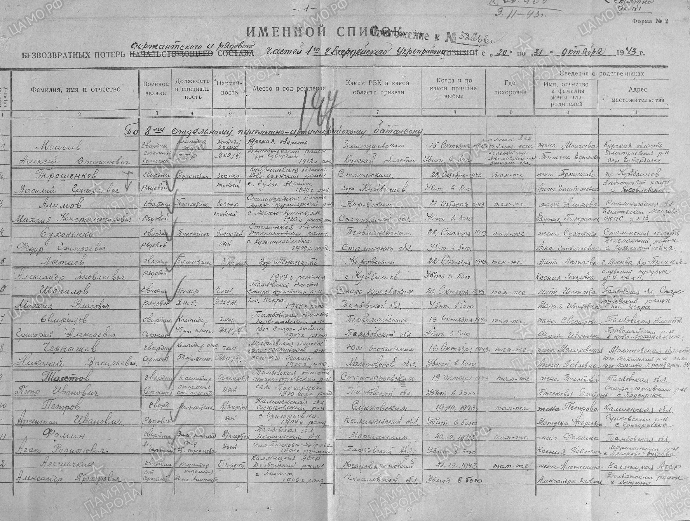 Информация сайта podvignaroda.ru: Наградить медалью «За боевые заслуги» связиста группы 76-го УР, красноармейца Шашкина Петра Васильевича за то, что он 17 и 18 декабря под сильным артиллерийским, минометным и пулеметным огнем противника 6 раз исправлял порывы линии, тем самым обеспечивал бесперебойную связь штаба с подразделениями, ведущими бой (наградной лист от 20.12.1942 г.).