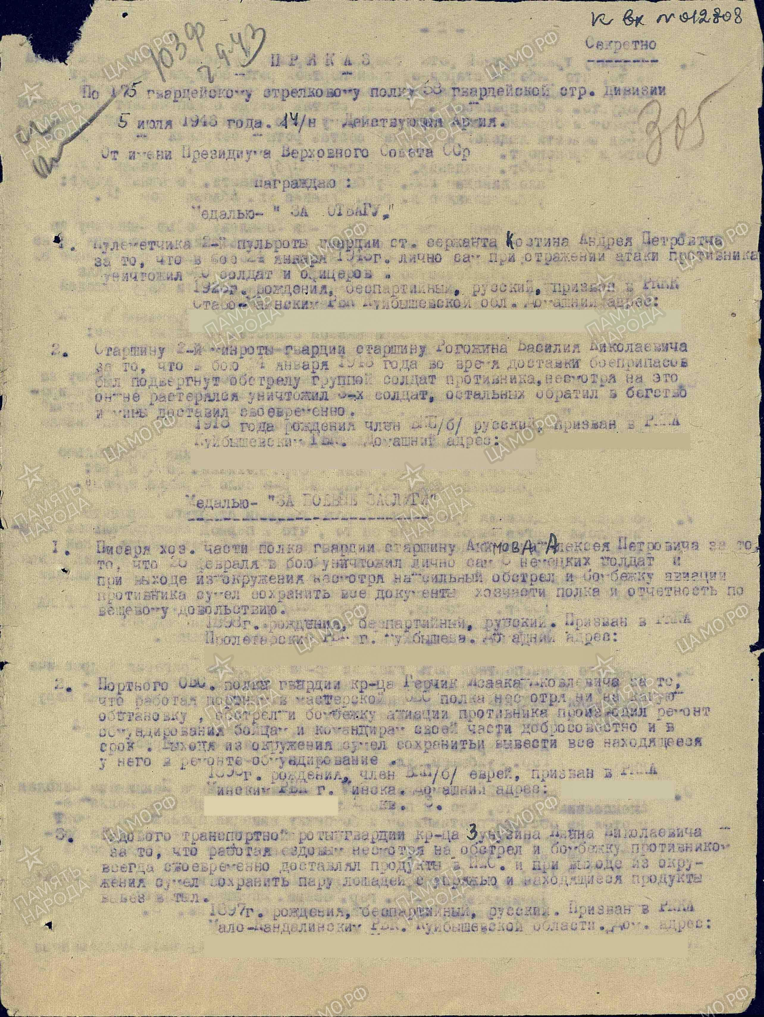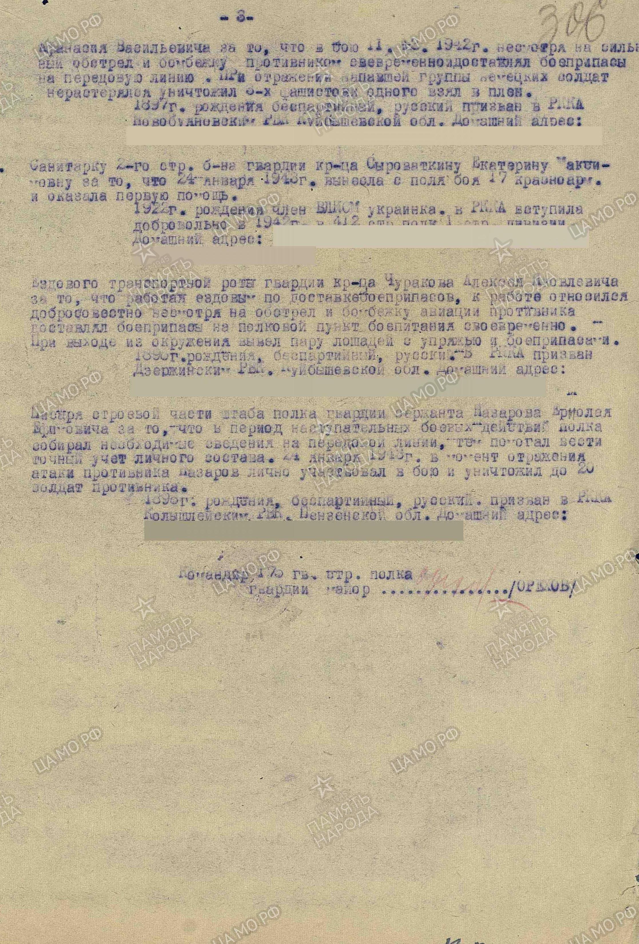 Информация сайта podvignaroda.ru: Наградить медалью «За боевые заслуги» командира хозяйственного отделения 2-го стрелкового батальона, гвардии сержанта Пакшеванова Афанасия Васильевича за то, что в бою 11 декабря 1942 г., несмотря на сильный обстрел и бомбежку противника, своевременно доставлял боеприпасы на передовую линию. При отражении атаки напавшей группы немецких солдат не растерялся, уничтожил 3 фашистов и одного взял в плен (Приказ от 5.07.1943 г.).