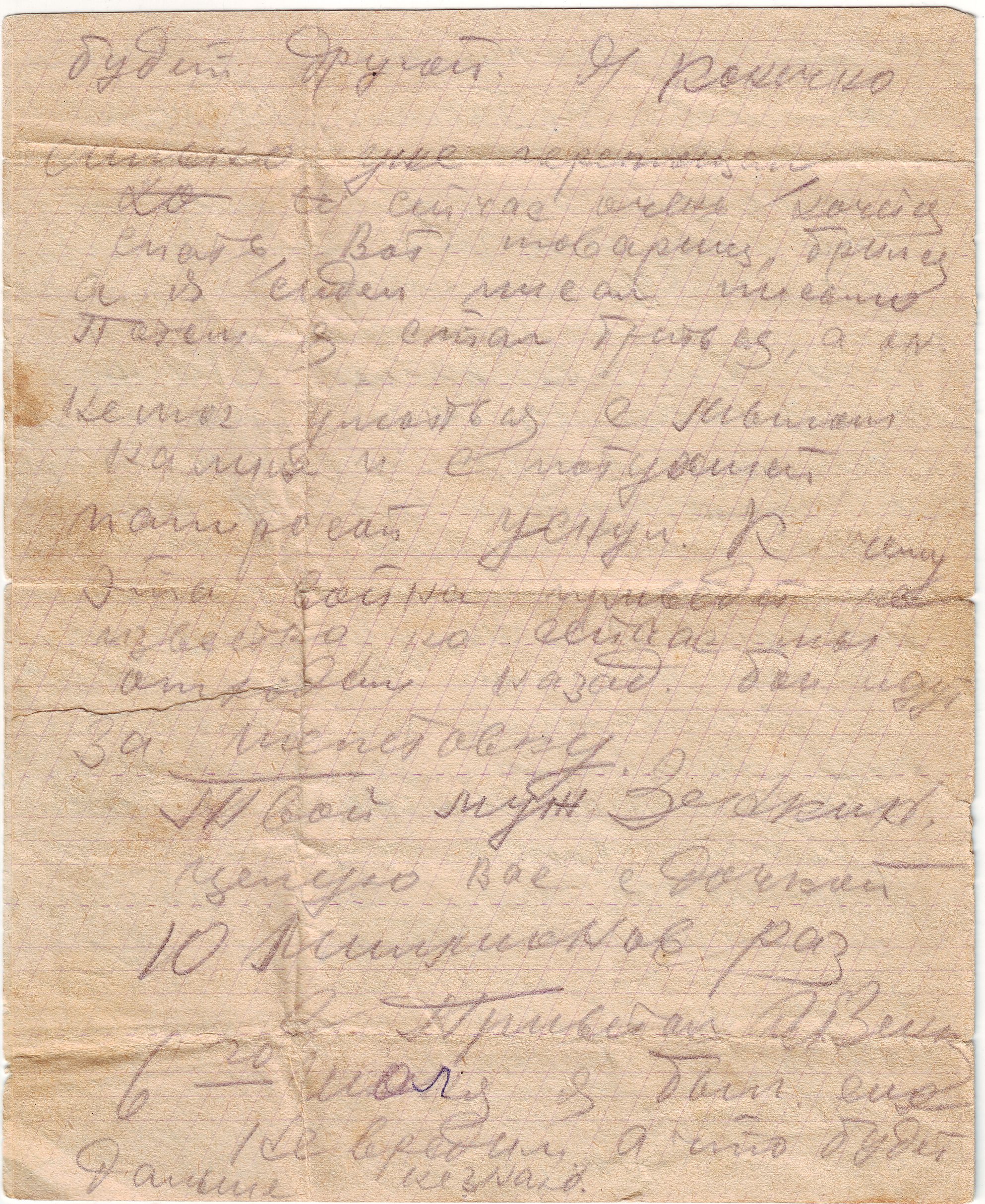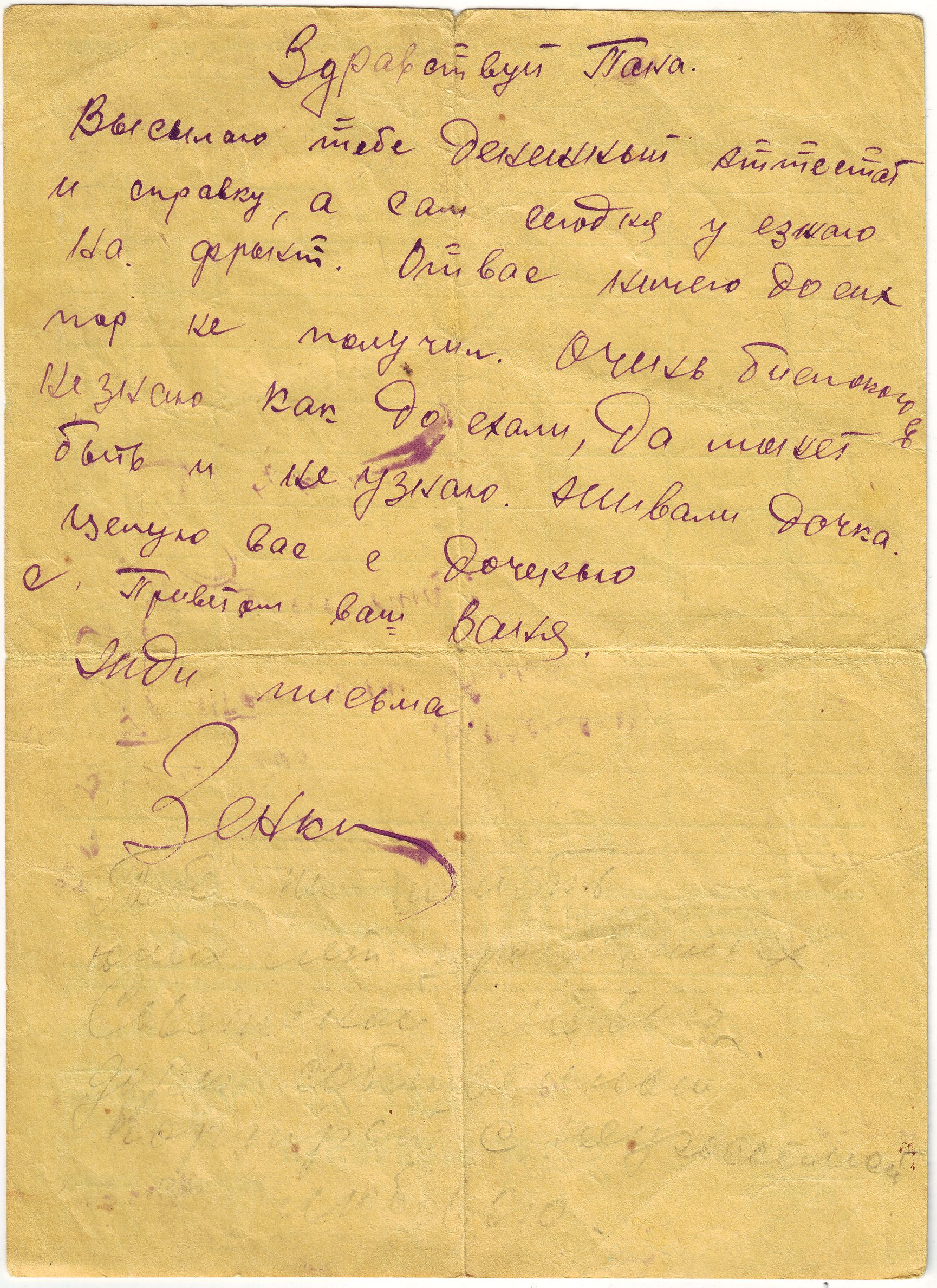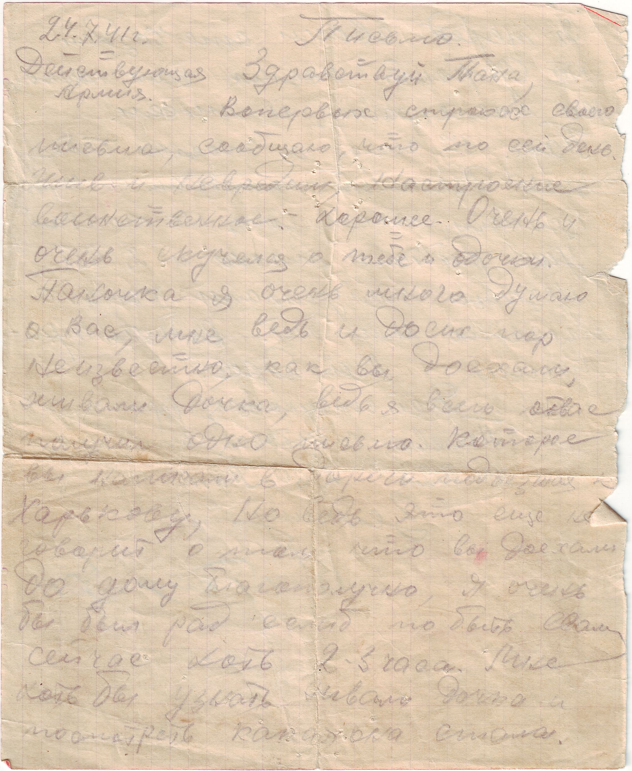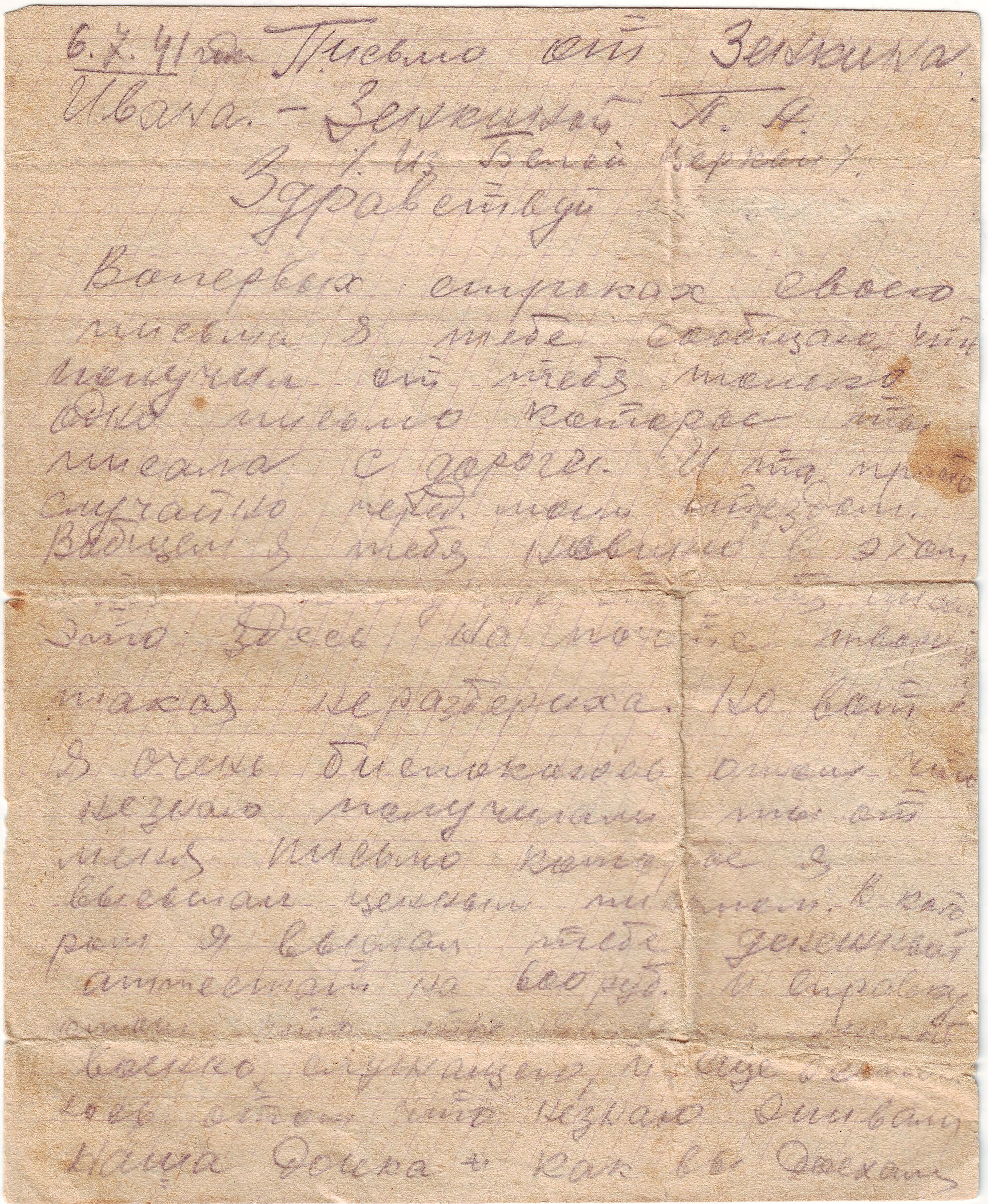 В письме к ним от 24 июля 1941 года (шел второй день войны!), он волнуется о том, добрались ли жена с дочкой до дома, ведь он получил их письмо, которое жена написала в дороге, подъезжая к Харькову. Согласно архивным данным ЦАМО Зенкин Иван Матвеевич пропал без вести в августе 1941 года. Однако позднее родные получили от него единственное письмо, датированное 22 июня 1942 года.