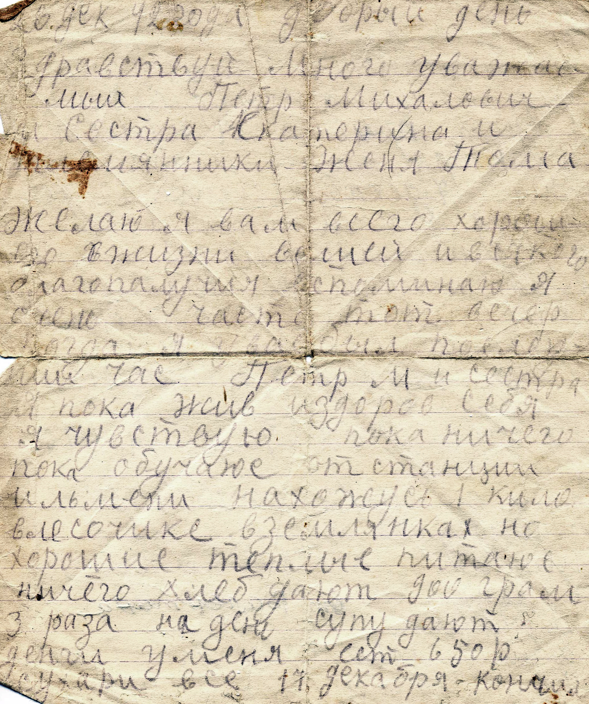 1909 года рождения, рядовой. Несмотря на то, что имел бронь, ушел на фронт в июне 1942 года. Погиб 20.09.1943 г. Мы имеем возможность прочесть его письма сестре Екатерине и ее семье, которые бережно хранятся его родными.