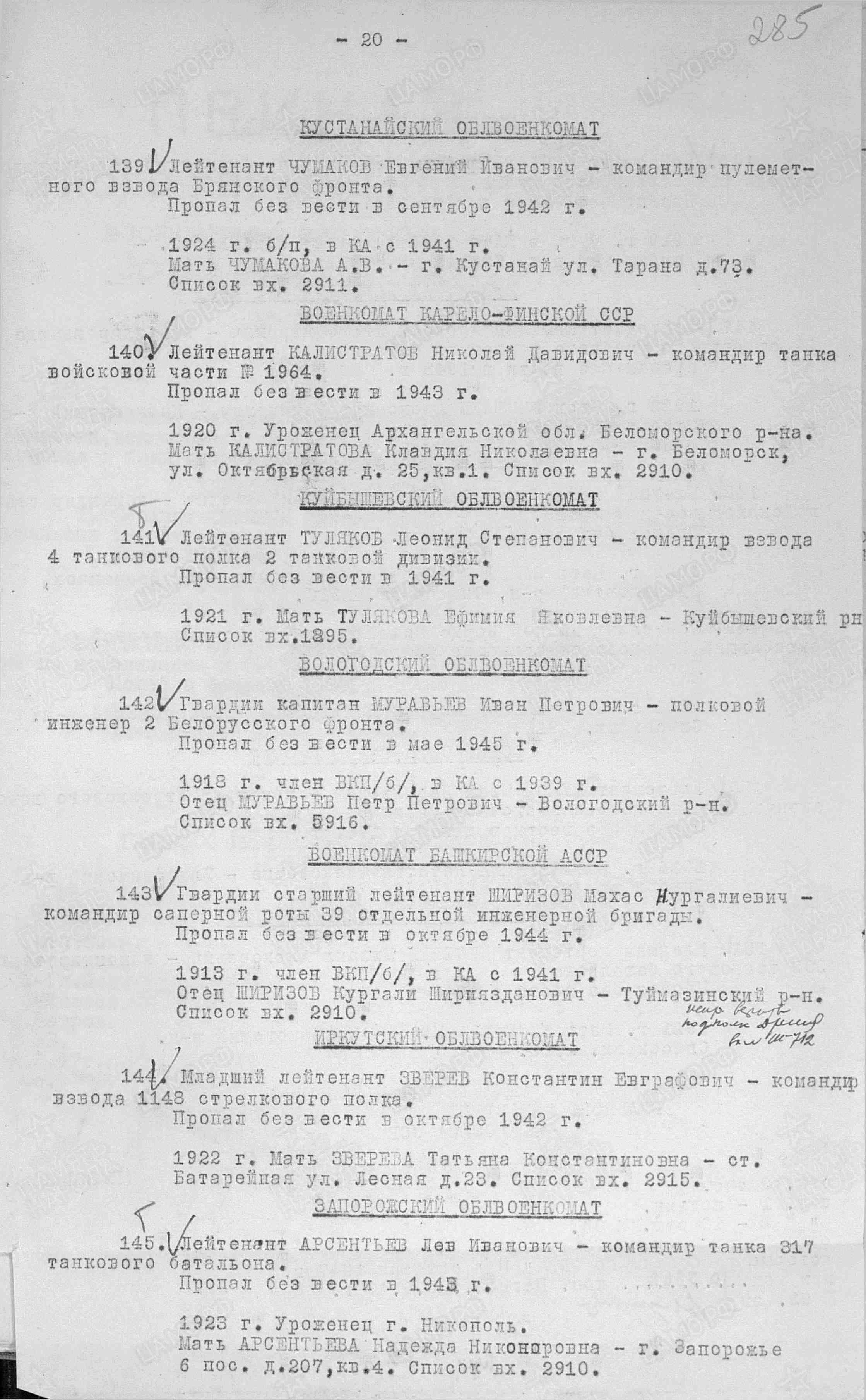 Лейтенант Туляков Леонид Степанович (1921 г.р., с. Георгиевка), командир взвода 4-го танкового полка 2-ой танковой дивизии пропал без вести в 1941 году. Другой информации на сегодняшний день нет.