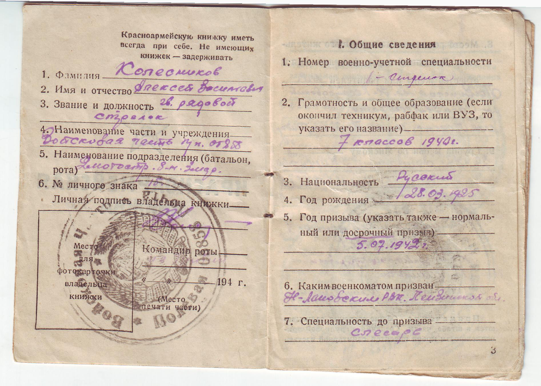Колесников А.В. Красноармейская книжка (8 стр.)