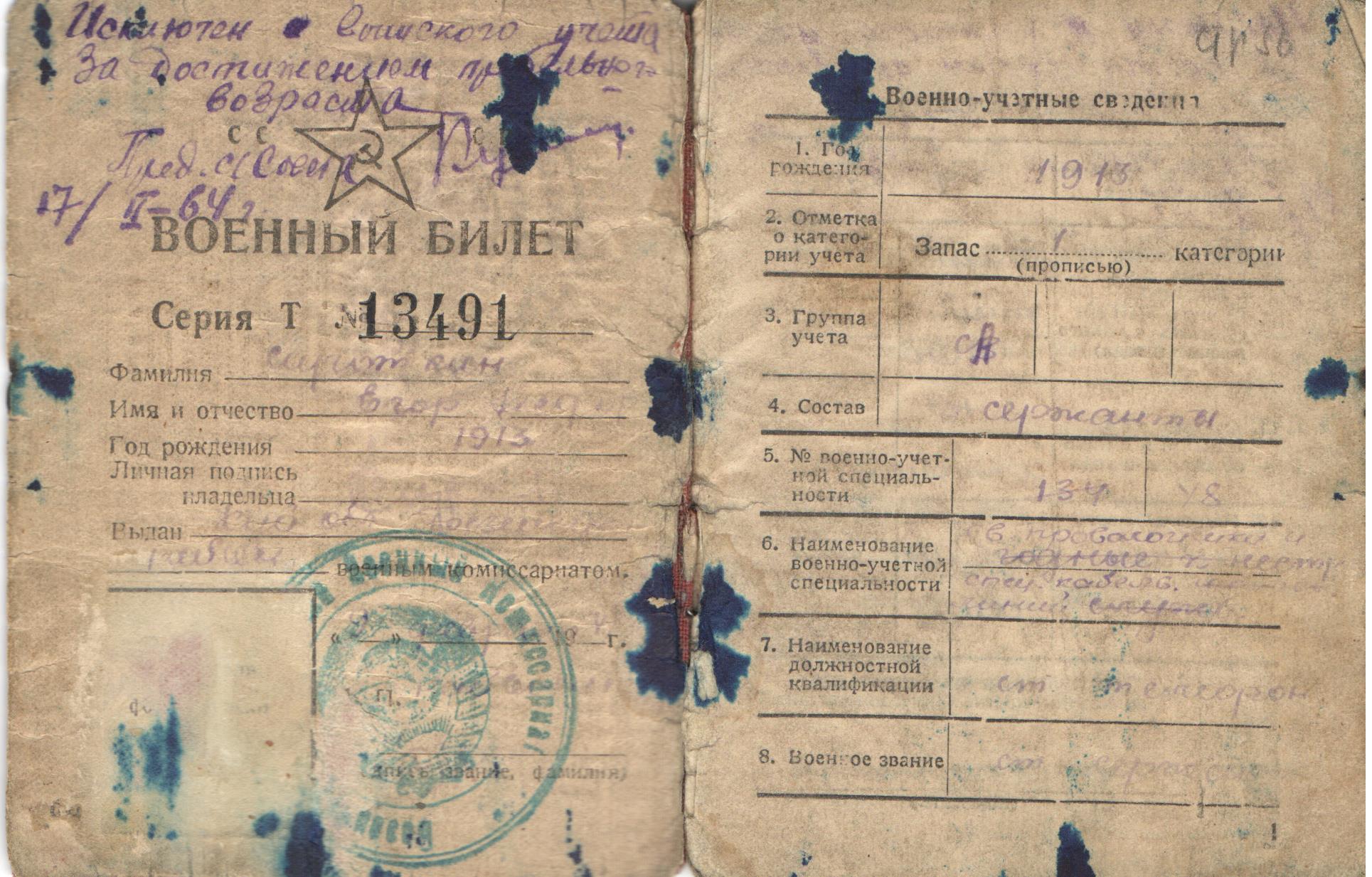 Документы и фотографии предоставлены Сироткиной Р.Е., с. Александровка Безенчукского района Самарской области