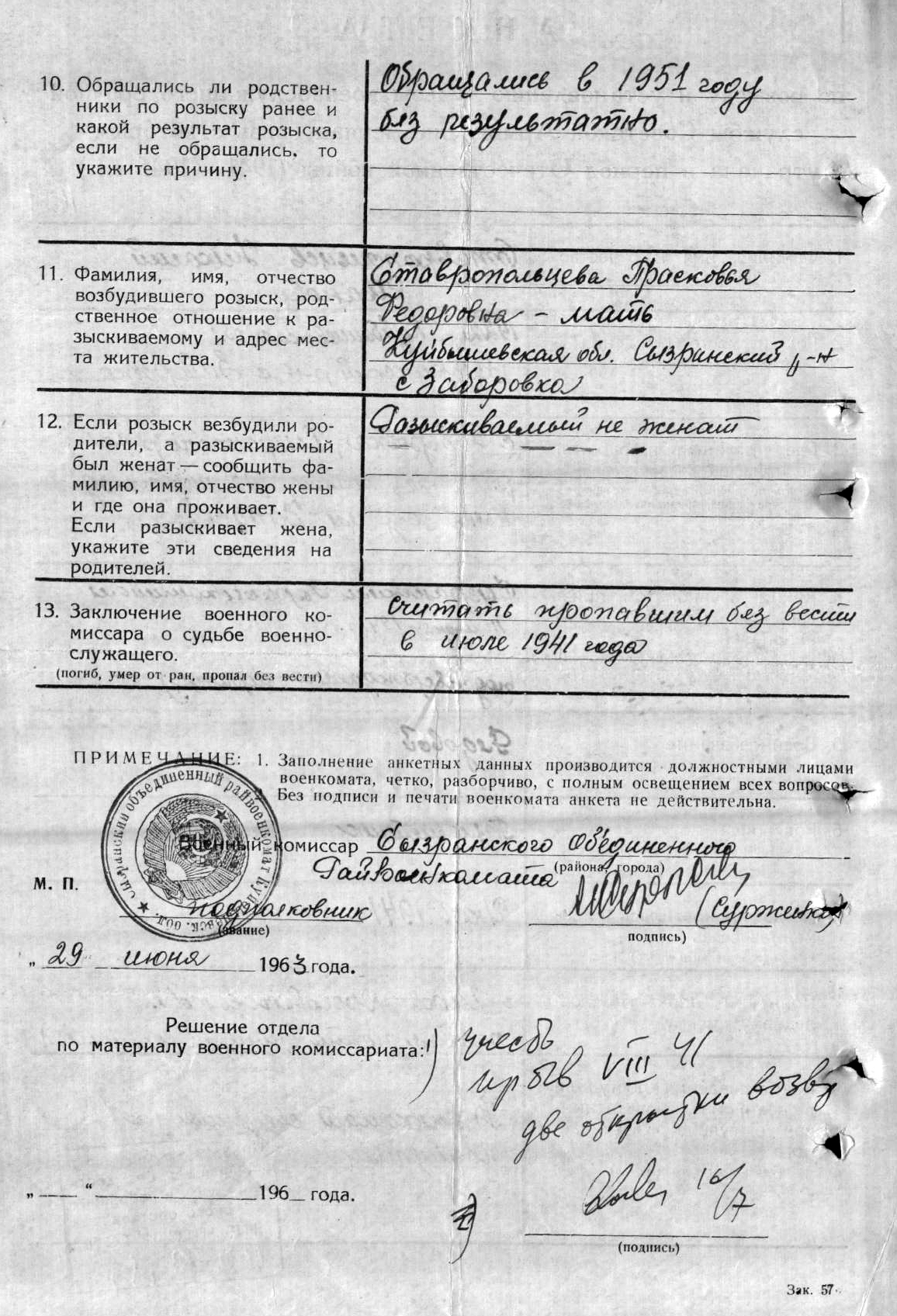 Участник Великой Отечественной войны. Погиб в августе 1941 года.