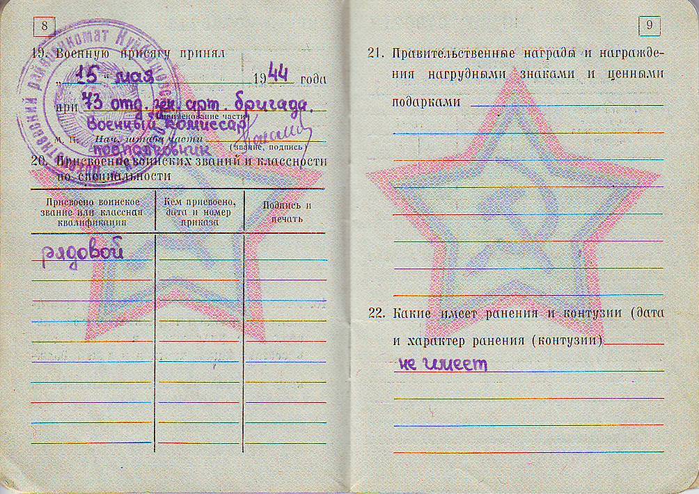 Участвовал в Великой Отечественной войне с марта 1944 по май 1945 гг. Служил в звании рядового, в должности номера 85-мм зенитного орудия 73-й отдельной зенитно-артиллерийской бригады. После войны работал слесарем.