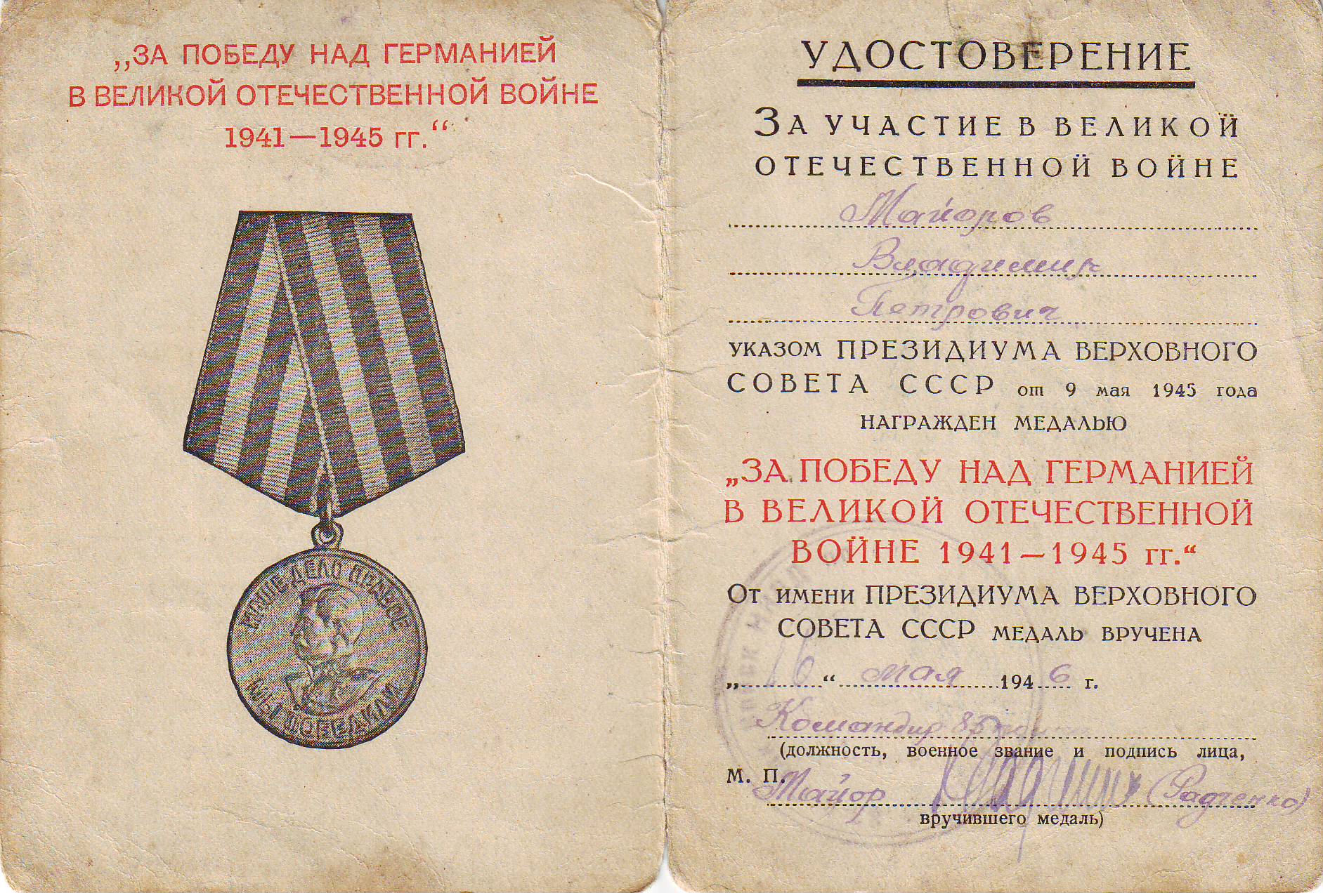 Документы и фотографии были предоставлены из личного семейного архива Владимира Петровича Майорова, проживающего в п. Верхняя Подстепновка Волжского района Самарской области