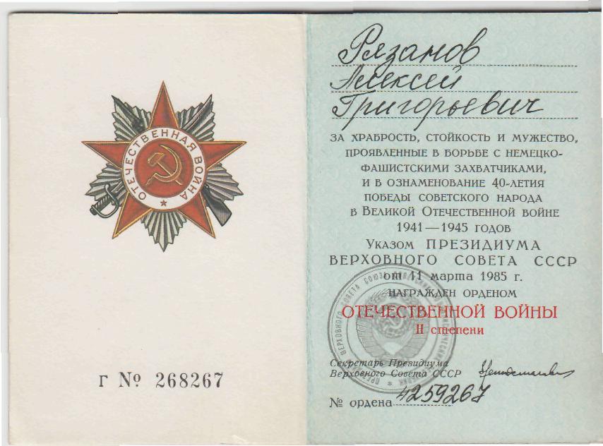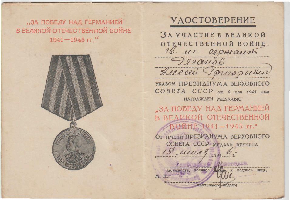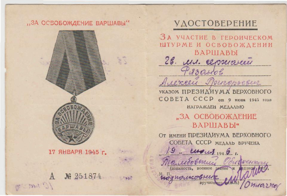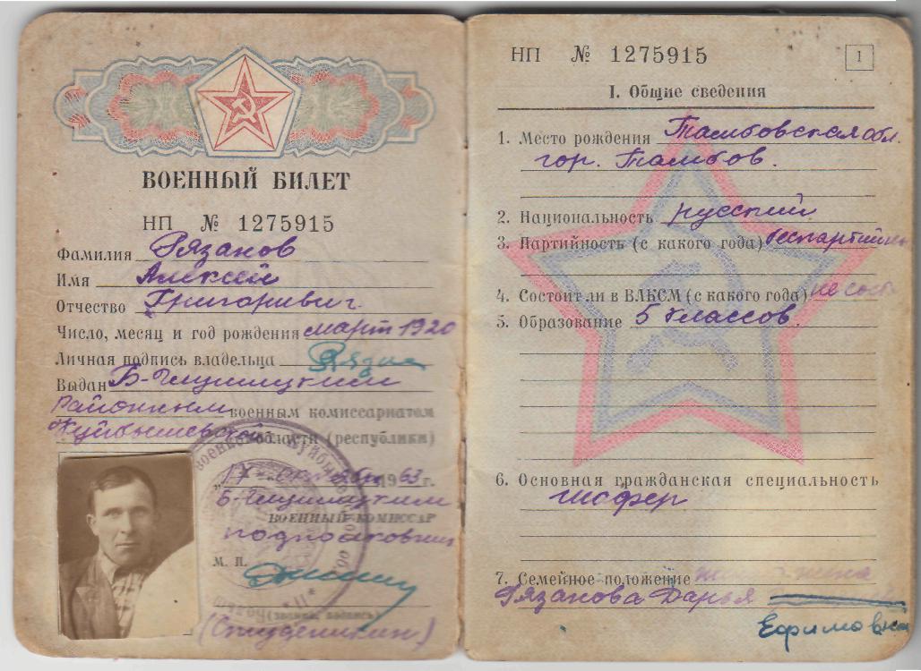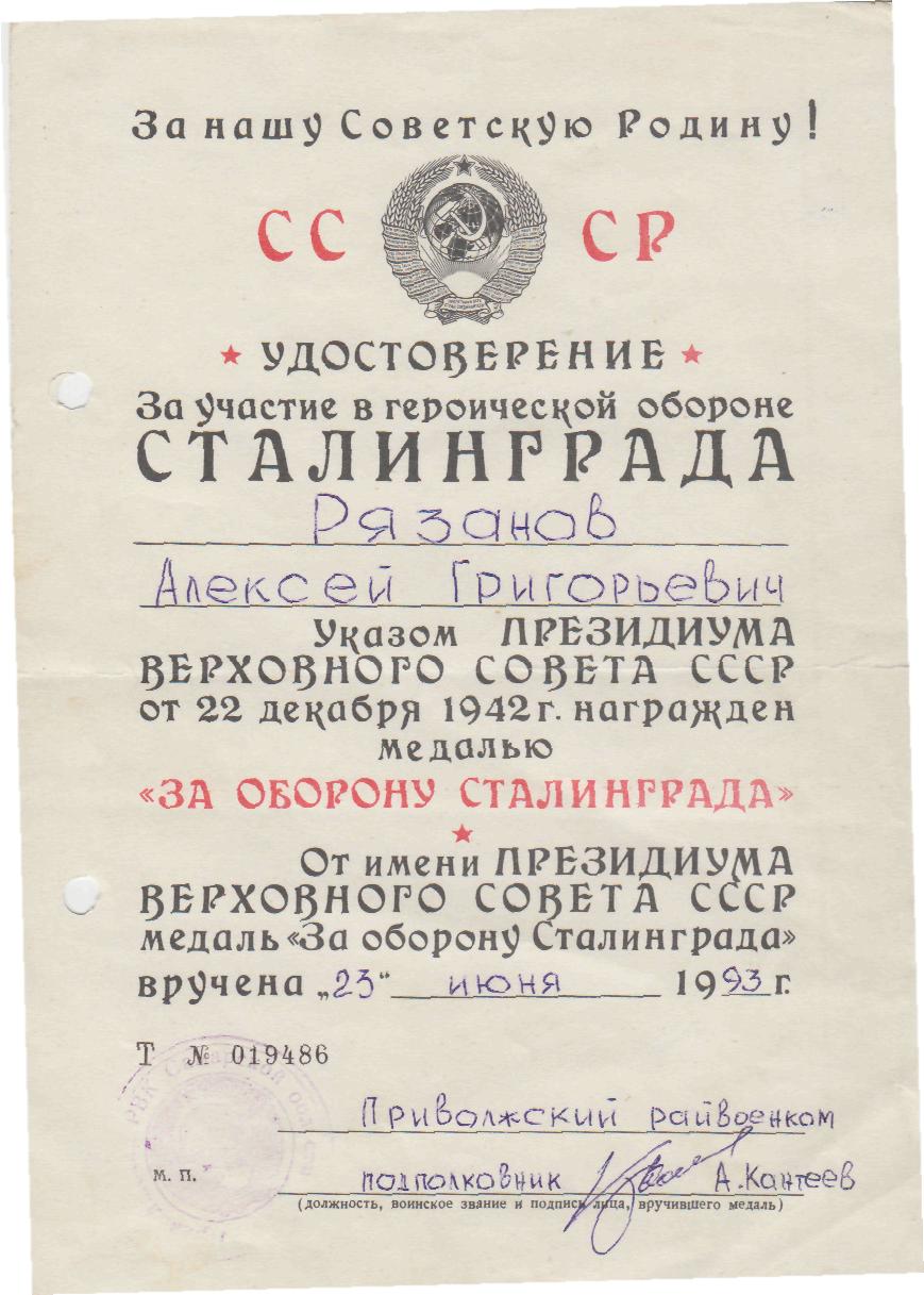 Документы и фотографии предоставлены сыном, Рязановым Сергеем Алексеевичем