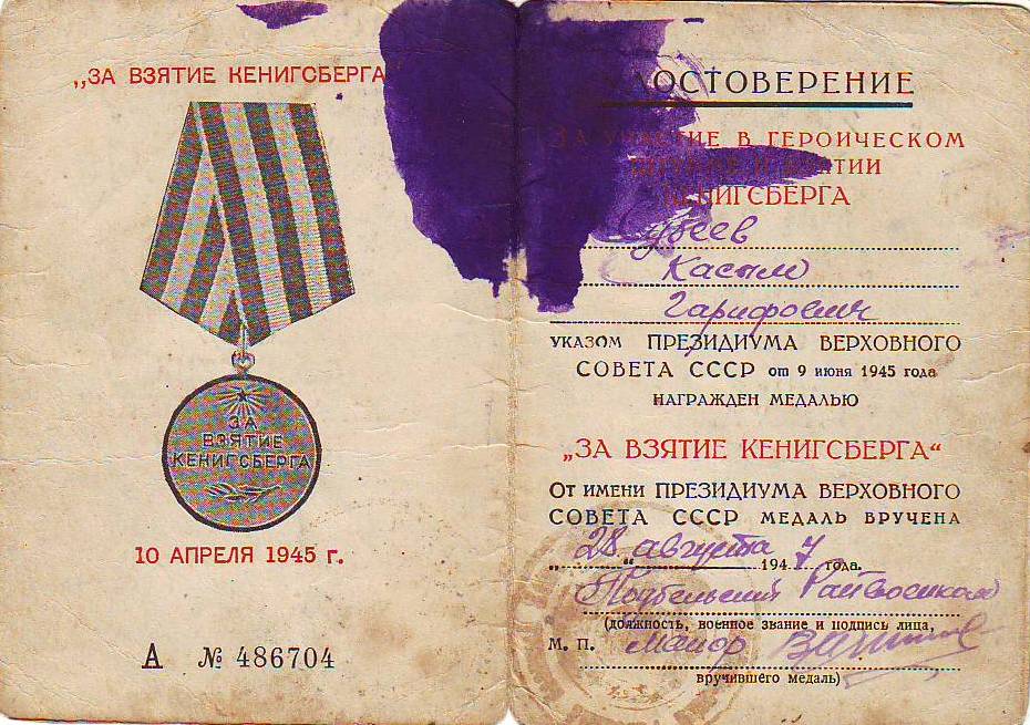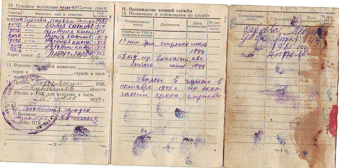 Материалы из семейного архива предоставлены дочерью, Абдрахмановой Даниёй Касымовной, проживающей в селе Мочалеевка Похвистневского района Самарской области
