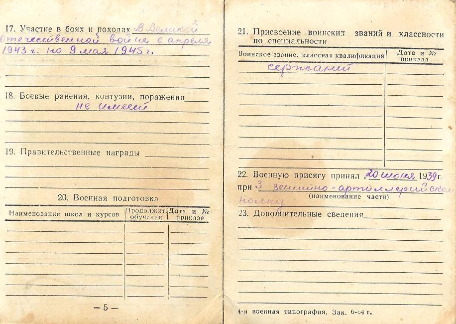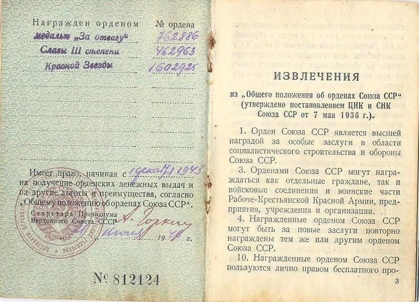 Наградные листы: