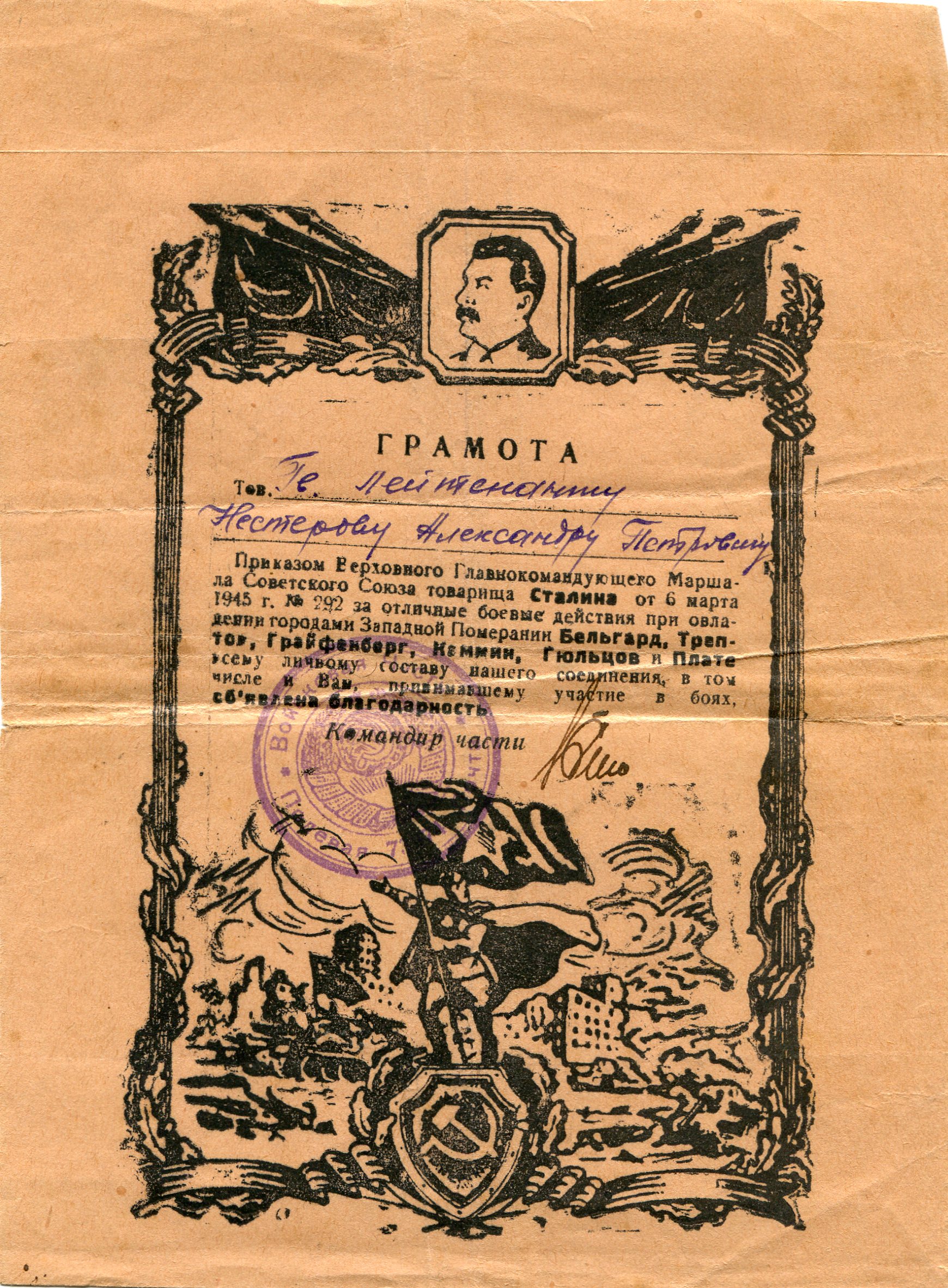 Документы и фотография из семейного архива дочери ветерана - Красновой Ларисы Александровны, г. Сызрань Самарской области