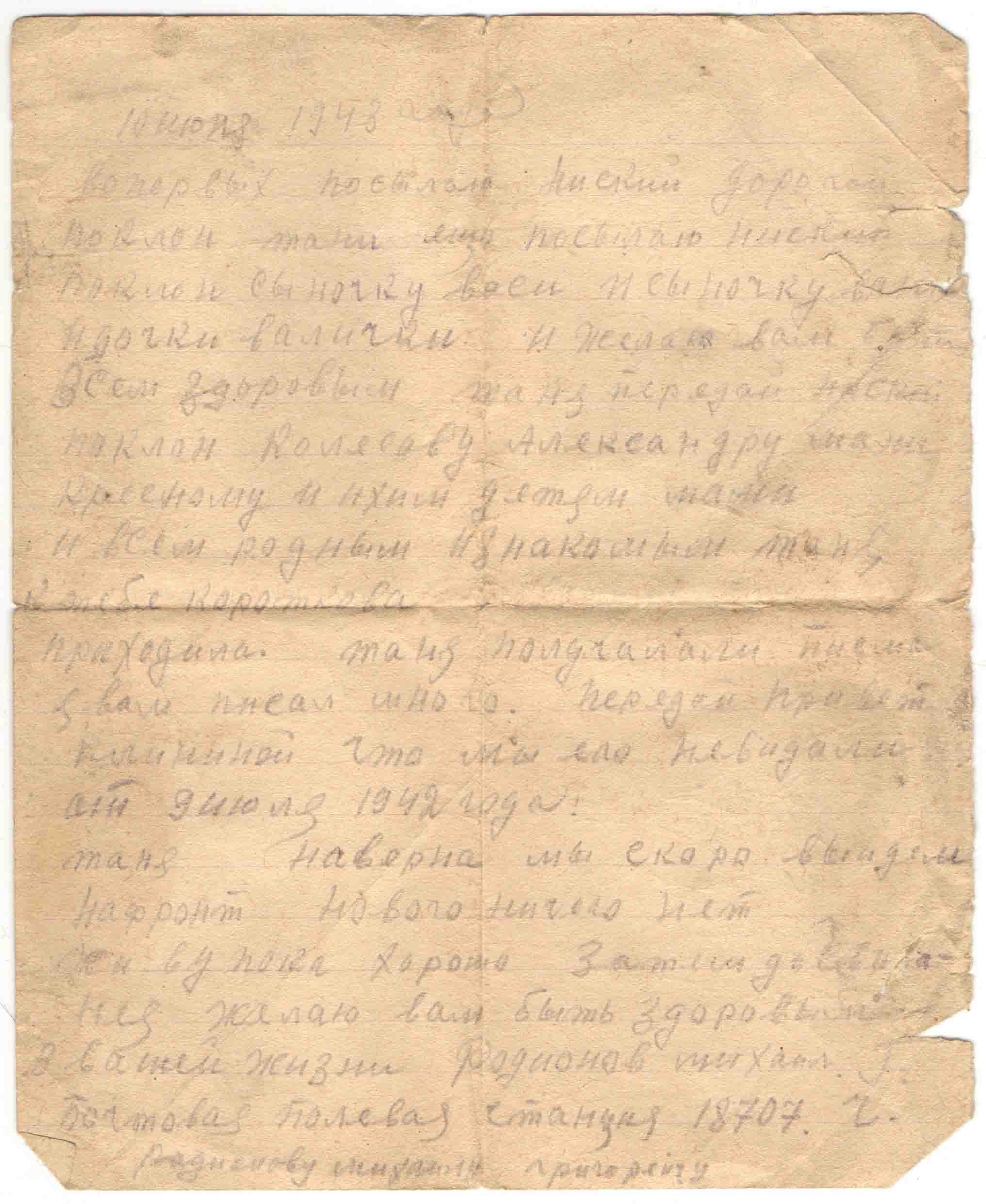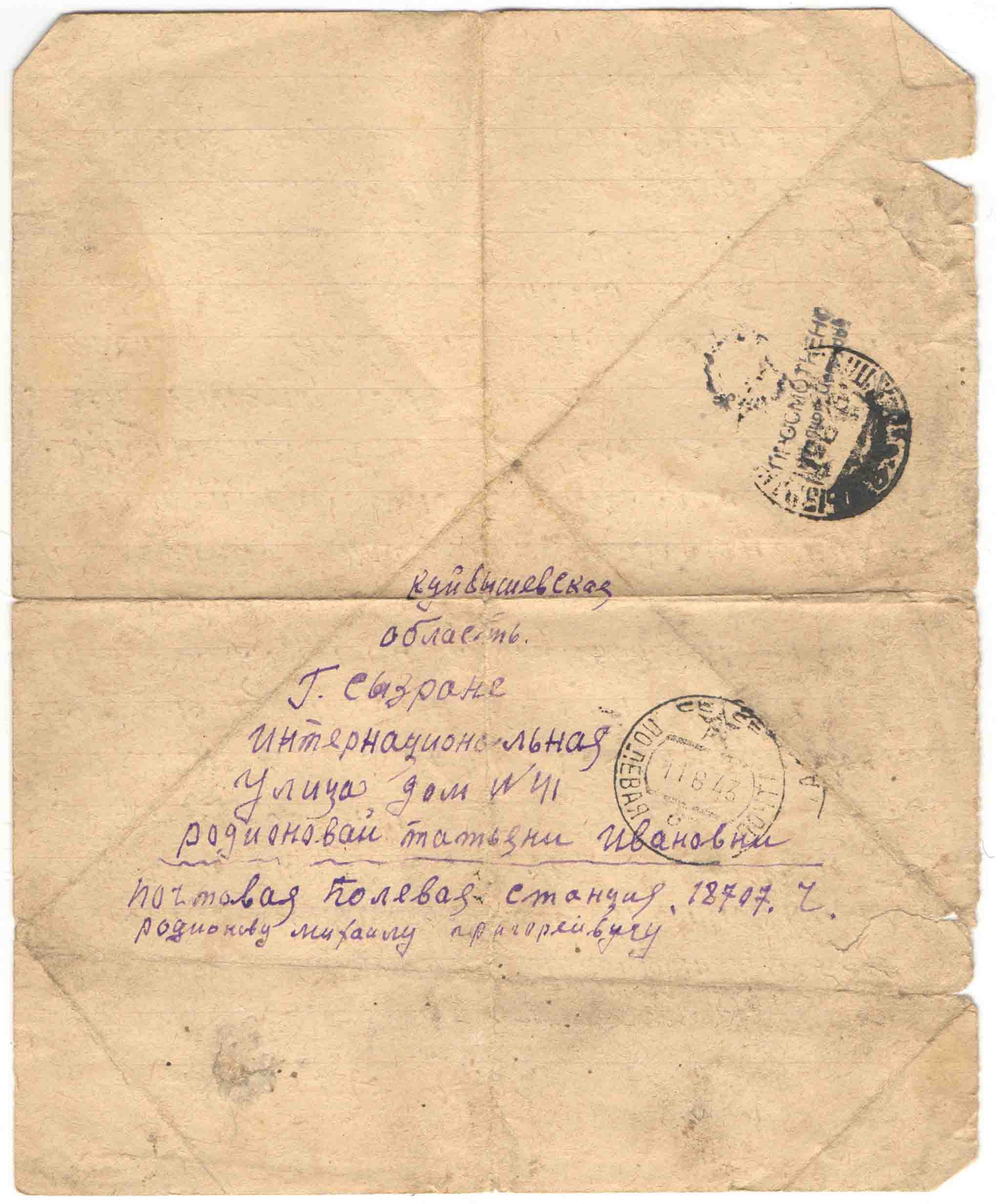 Письма хранятся в семейном архиве дочери, Валентины Михайловны Родионовой, г. Сызрань Самарской области