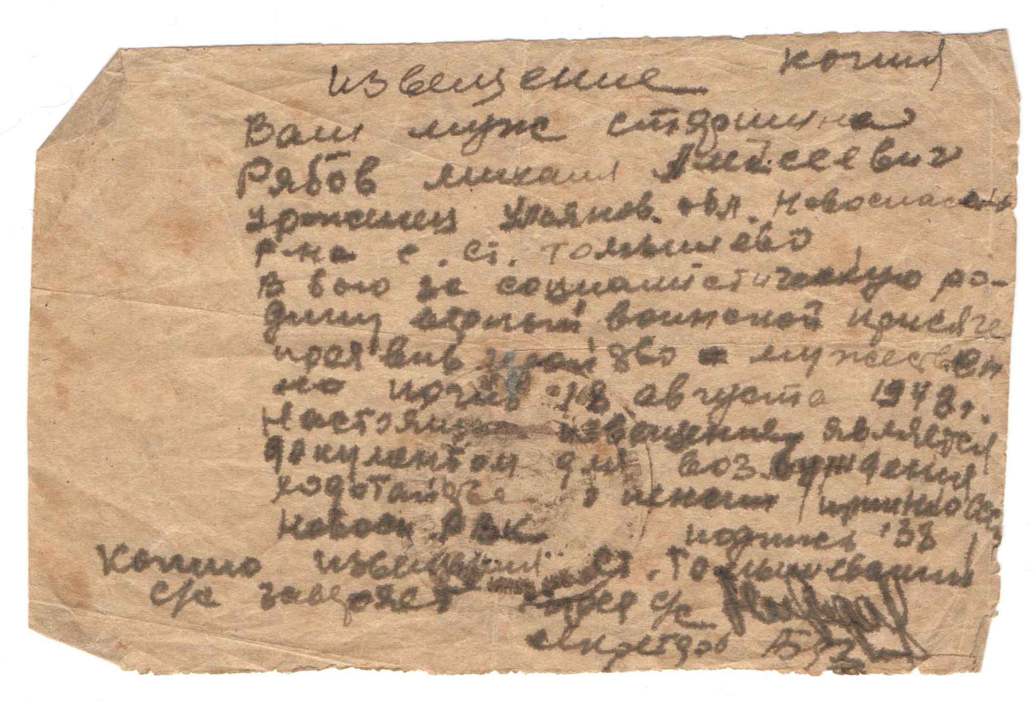 Фотографию и документы предоставила дочь, Трошанина (Рябова) Зинаида Михайловна, г. Сызрань Самарской области