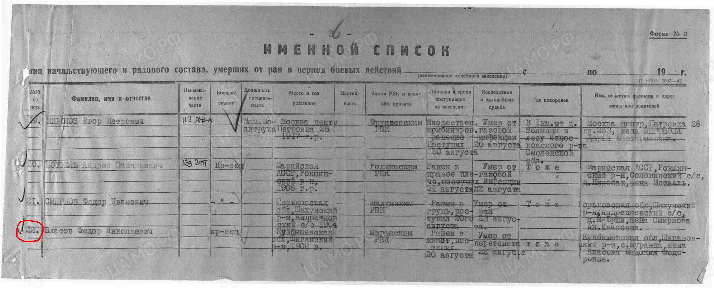Призван на фронт Шигонским РВК Куйбышевской области. Служил в звании рядовой 222-й стрелковой дивизии.