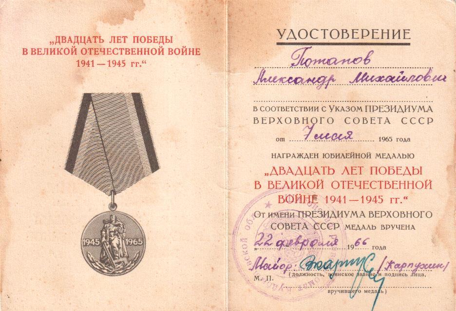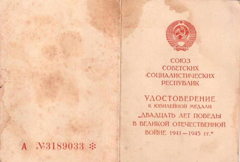 Награды: медали «20 лет Победы в Великой Отечественной войне 1941-1945 гг.», «30 лет Победы в Великой Отечественной войне 1941-1945 гг.»