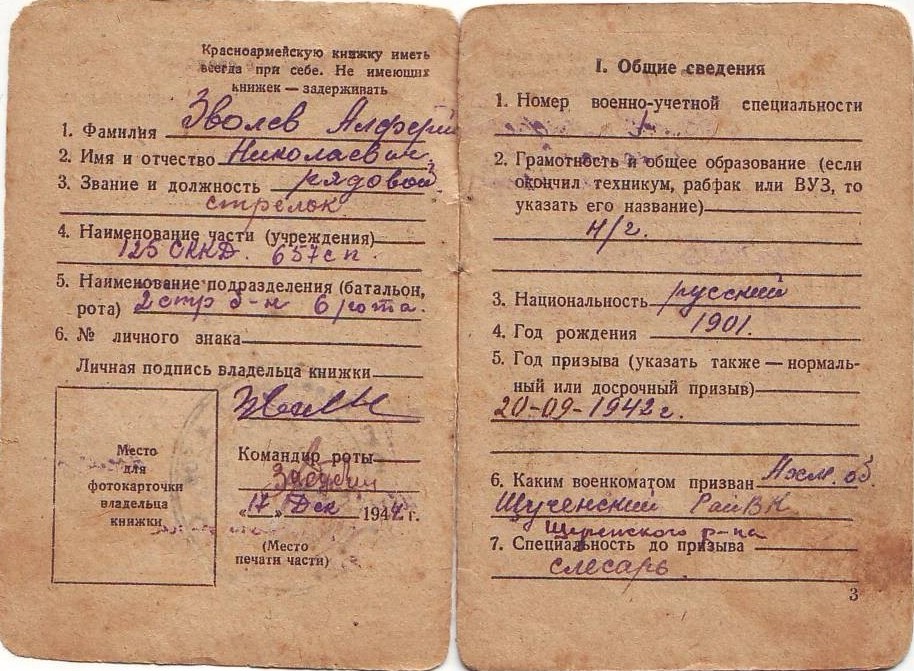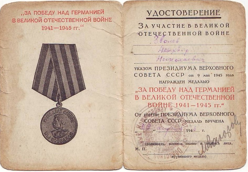 Документы из семейного архива внучки, Зволевой Аллы Васильевны, г. Чапаевск Самарской области