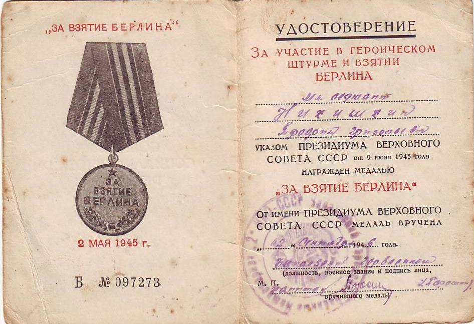 Награды: медали «За победу над Германией в Великой Отечественной войне в 1941-1945 гг.», «За взятие Берлина», «За освобождение Праги», «За доблестный труд в Великой Отечественной войне 1941-1945 гг.»