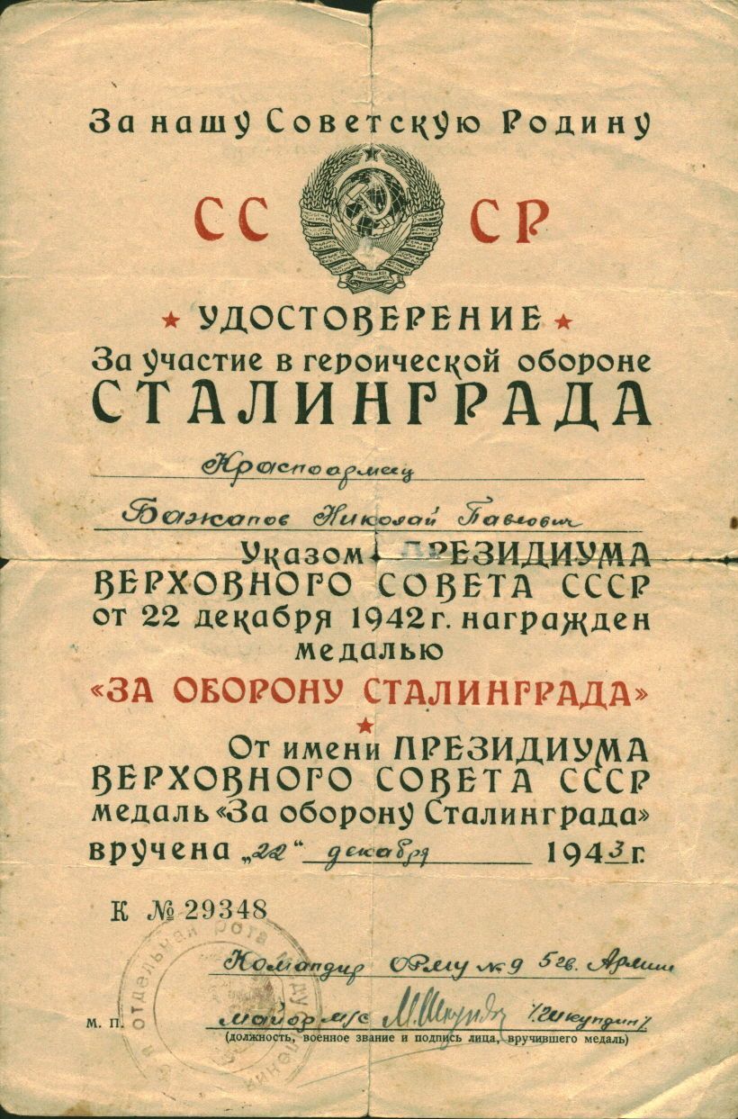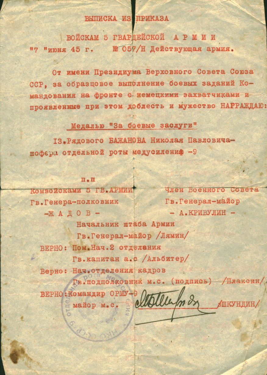 Из семейного архива сына ветерана, Бажанова Александра Николаевича и внучки, Марковой Ирины Александровны, г. Новокуйбышевск Самарской области