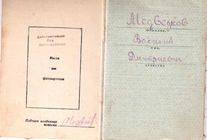 И вот первое боевое крещение. В ночь с 25 на 26 июля корабль снялся с якоря и направился к берегам Румынии. Выполнили свое боевое задание и легли на обратный курс. В корабль, на котором несли свою вахту Медведков и его товарищ Филатов, неприятель пустил торпеду. Уклоняясь от нее, корабль наскочил на мину. 13 часов держались моряки на воде, пока их не подобрал румынский катер. Моряков считали погибшими. Мать Василия Дмитриевича получила извещение. Но во время перегона из лагеря в лагерь Василий и пять его товарищей бежали из плена. Два месяца добирались до линии фронта. Снова Черное море. На этот раз Василий Медведков полтора года ходил на лидере «Ташкент» в должности командира артиллерийского отделения. Из Новороссийска в Севастополь доставляли пополнение, оттуда забирали раненых. Почти каждый раз на корабль совершали налет самолеты противника, обстреливали и бомбили.