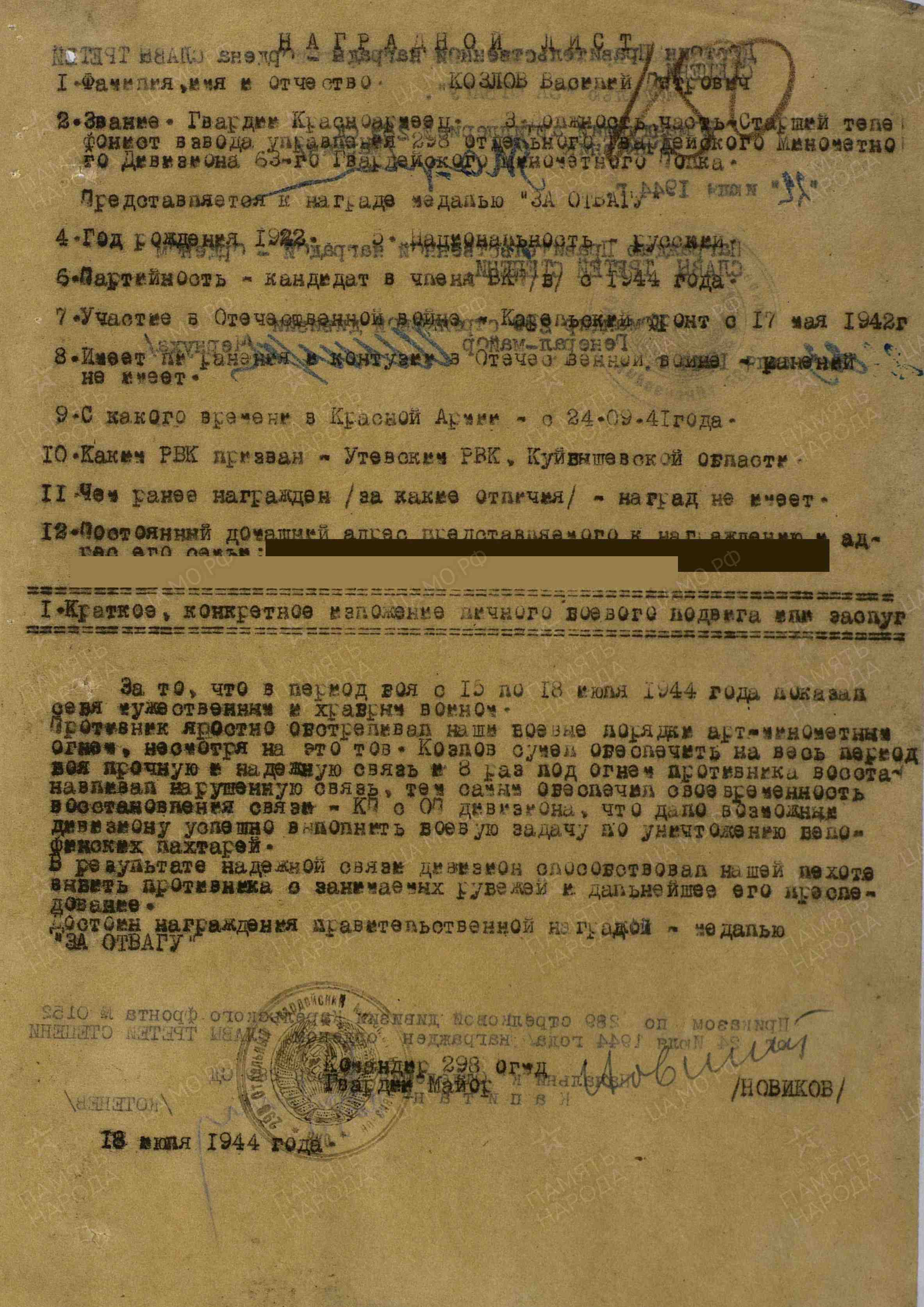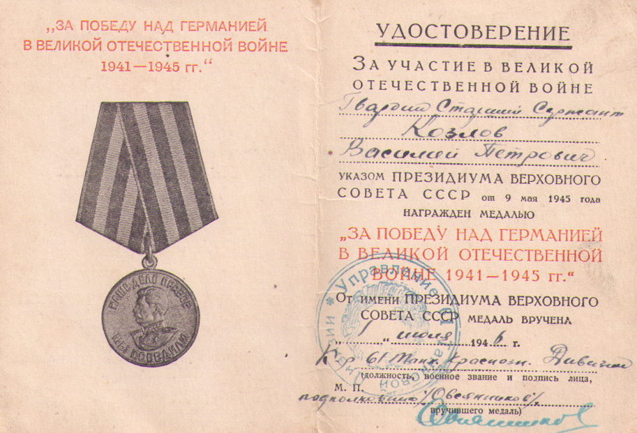 Материалы передала жена ветерана, Козлова Татьяна Кузьминична, с. Парфеновка, Кинельский район Самарской области