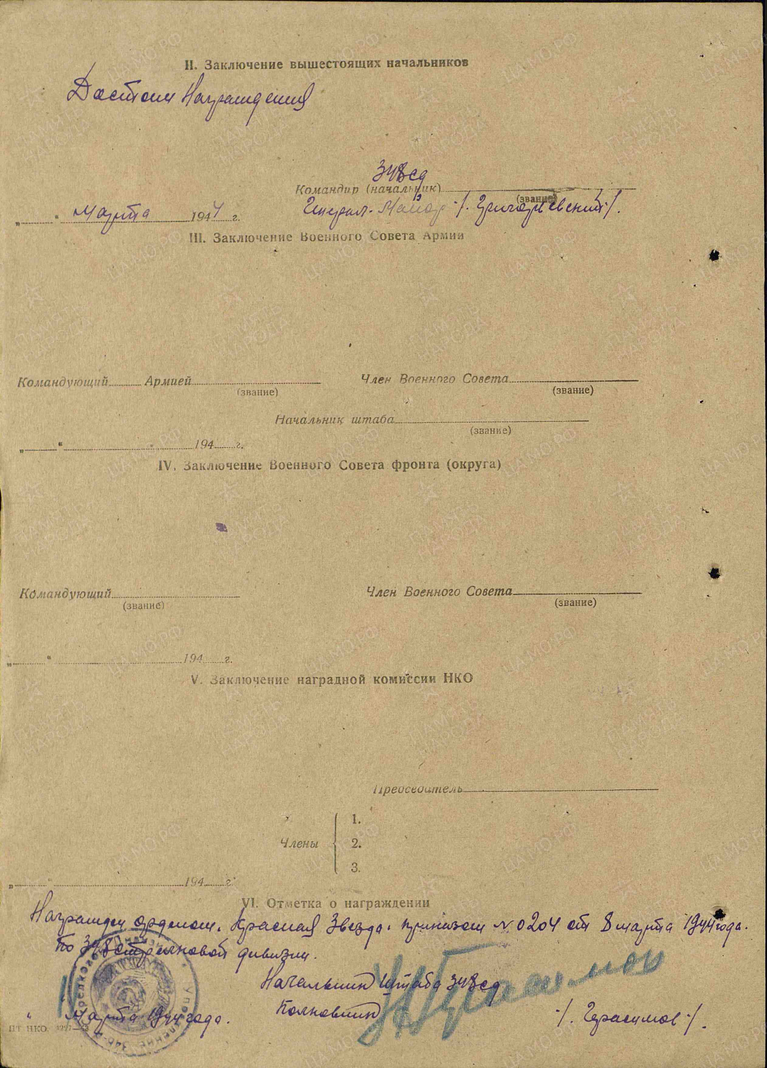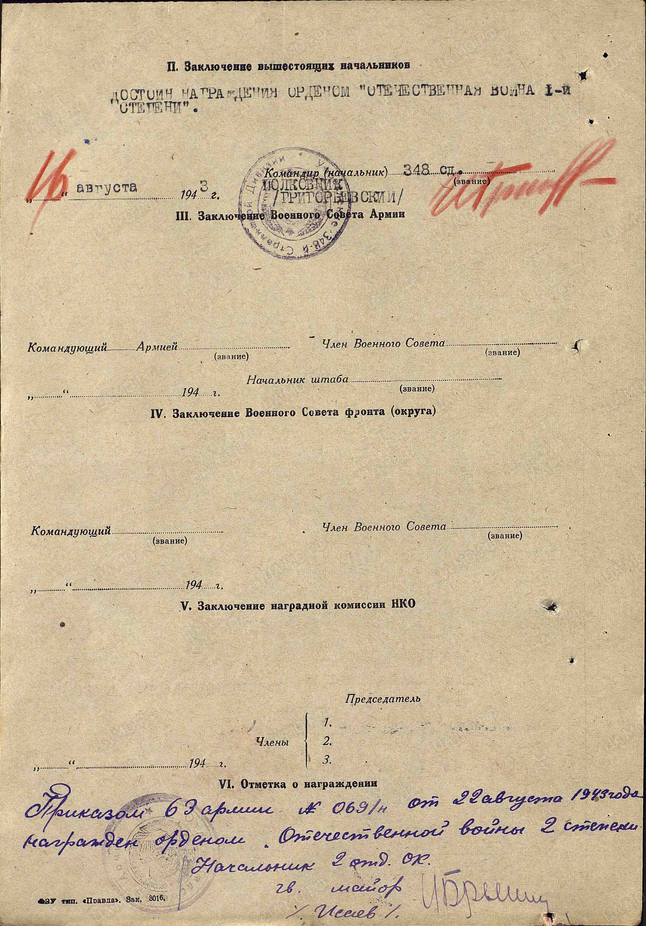 Информация из Наградных листов: