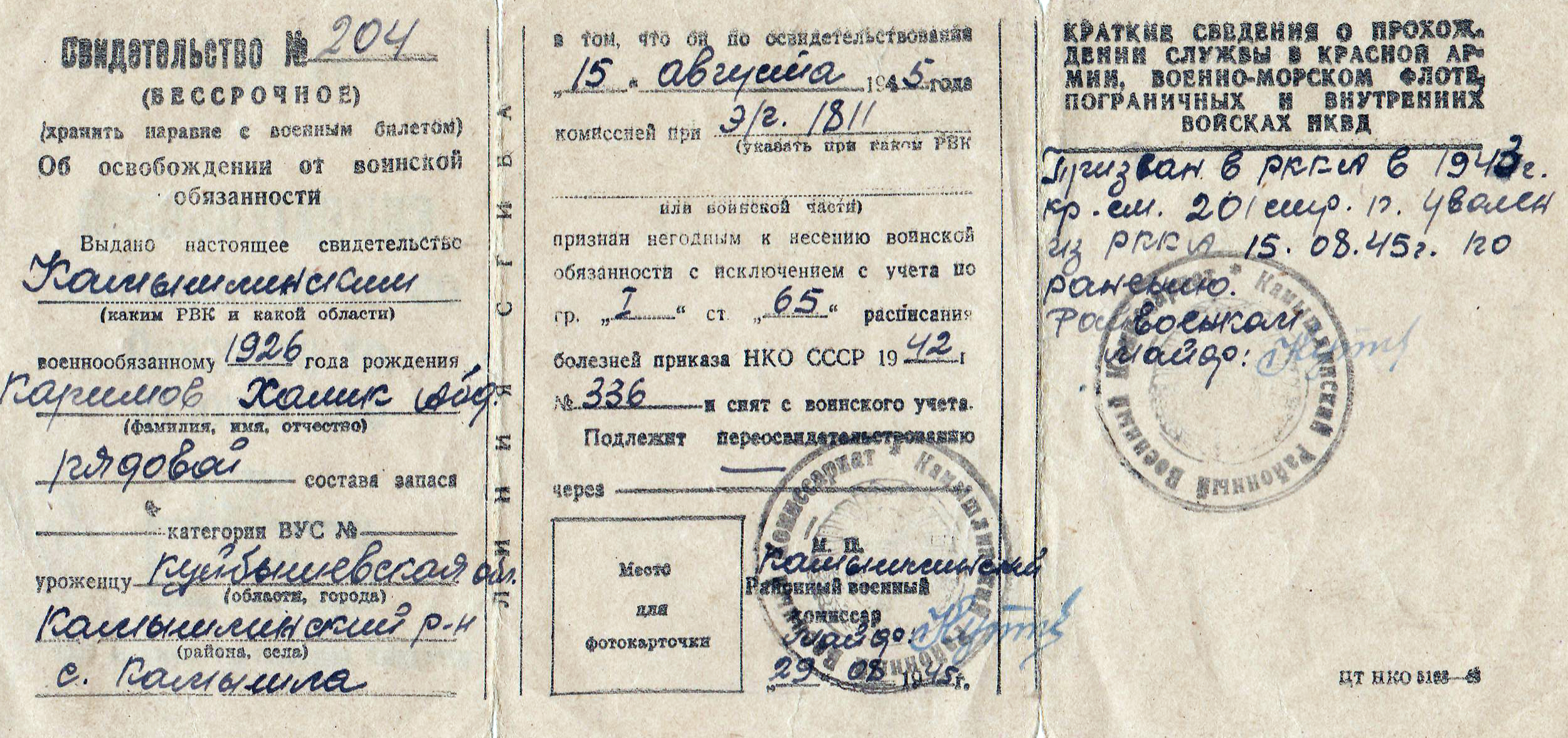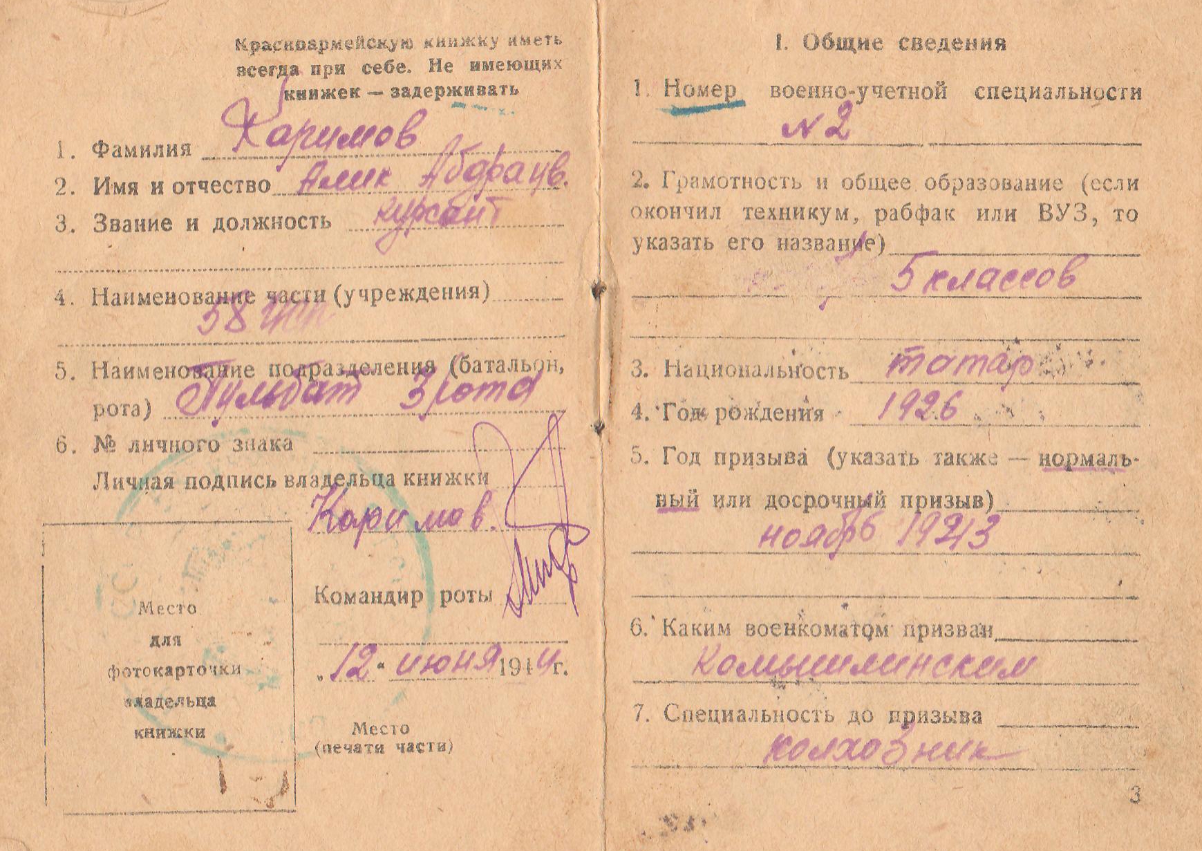 Документы и фотографии из семейного архива сына, Каримова Рината Халиковича и дочери, Каюмовой Софии Халиковны, с. Камышла Самарской области