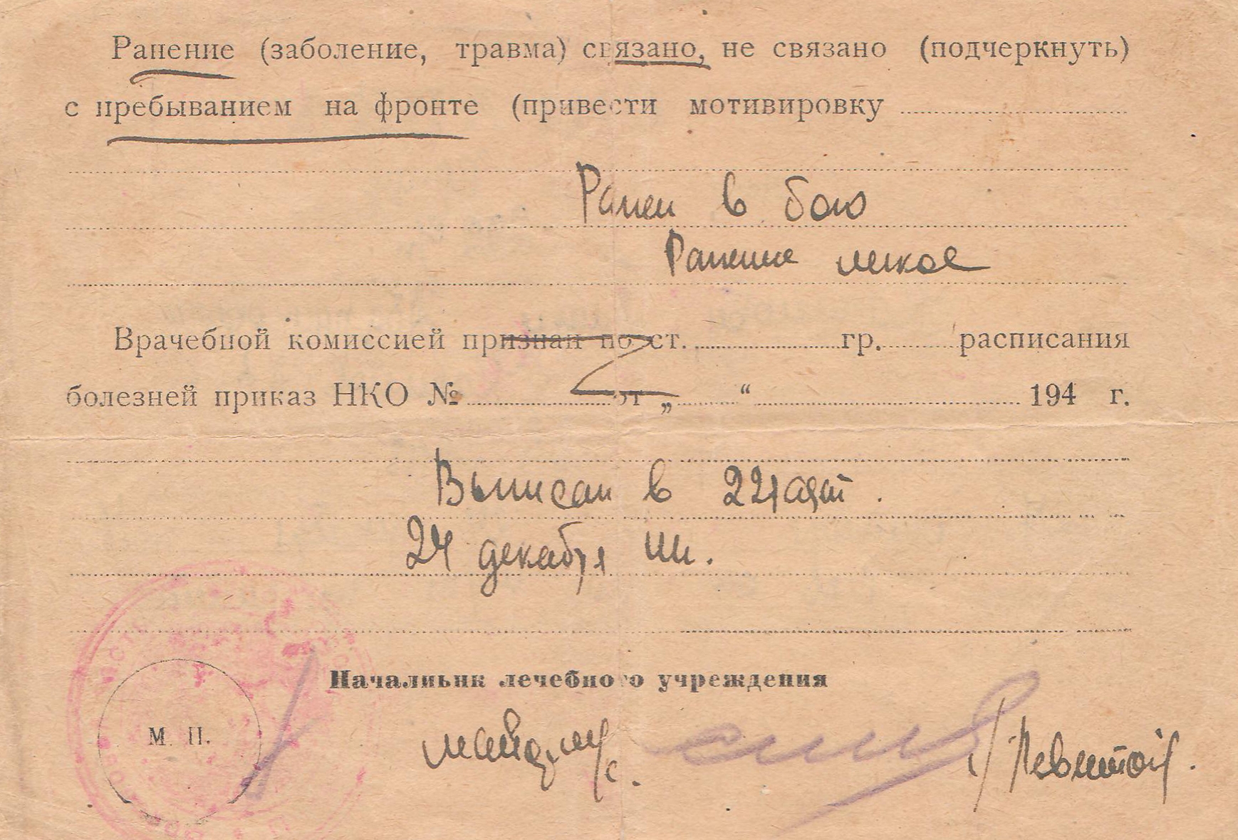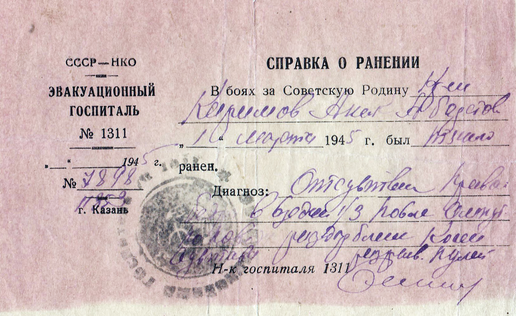 15 августа 1945 года после ранения был освобожден от воинских обязанностей по состоянию здоровья. Умер в 1982 году.