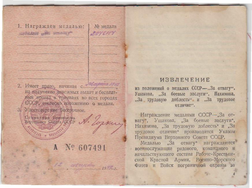 Награды: орден Красной Звезды, медали «За отвагу», «За оборону Кавказа», «За освобождение Варшавы».