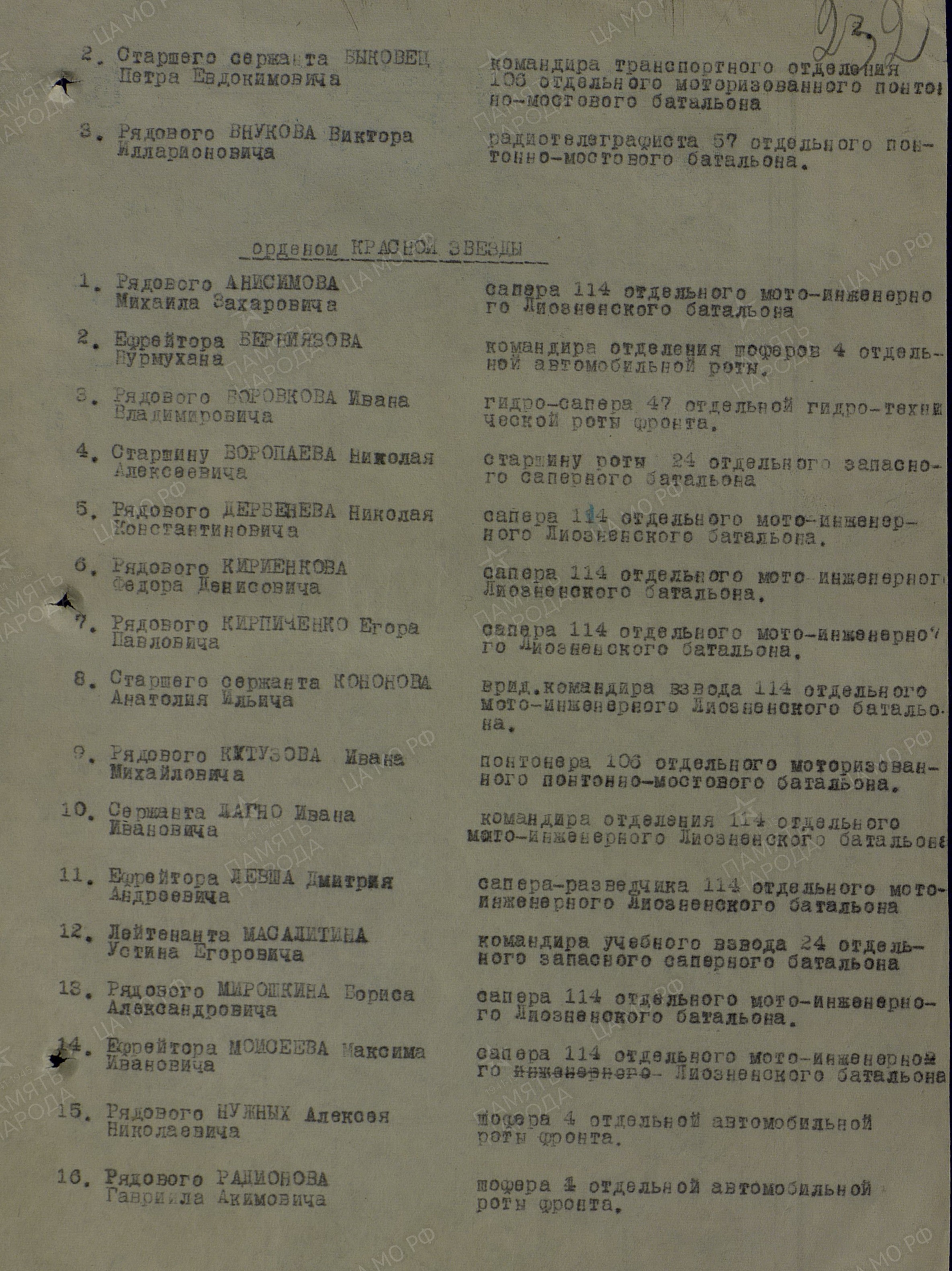 Информация из Наградных листов: