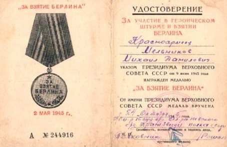 Михаил Мельников родился в 1922 году в селе Самсоновка Исаклинского района. До войны работал плотником в колхозе. В 1941 году ушел на фронт. Был связистом. Участвовал в Сталинградской битве и в битве за Берлин.