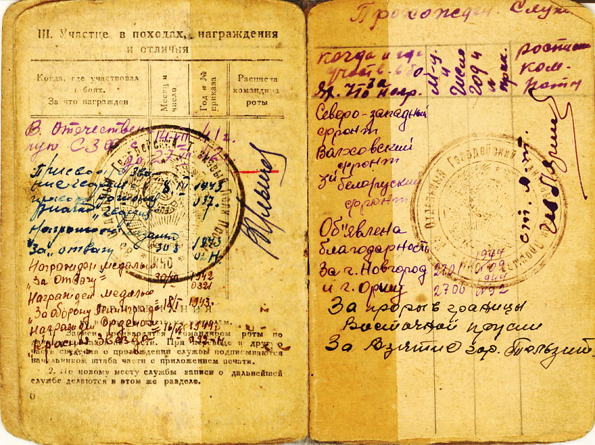 Наградить медалью «За отвагу» радиомастера роты технического обеспечения гвардии старшего сержанта Осипова Николая Тимофеевича за быстрый ремонт и восстановление танковых радиостанций у подбитых на поле боя 2-х танков под огнем противника, проявившего при этом бесстрашие и отвагу (наградной лист от 30.03.1943 г.).