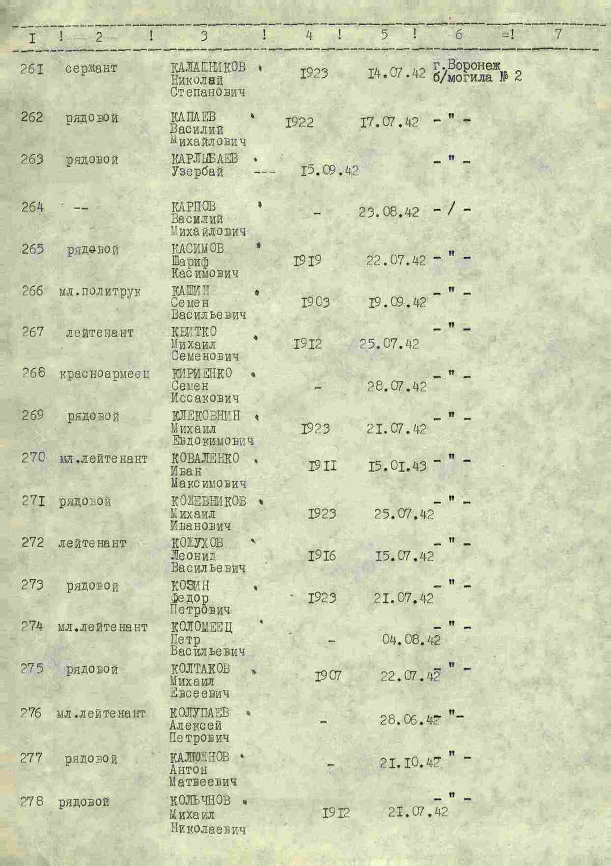 О нем удалось узнать только то, что он погиб на фронте 21 октября 1942 года и похоронен в г. Воронеж, пр. Московский, 82и, братская могила 2 (Памятник Славы).