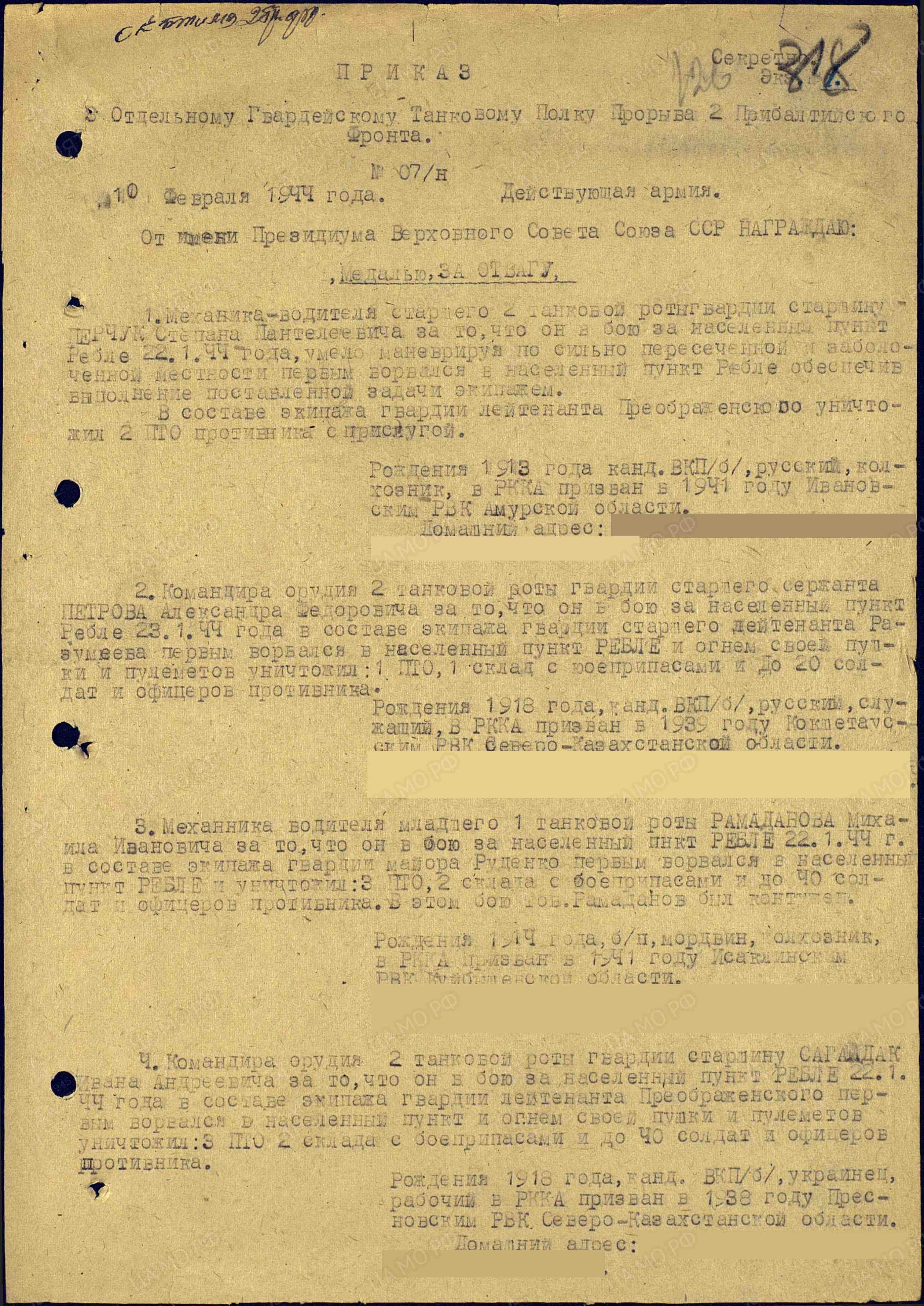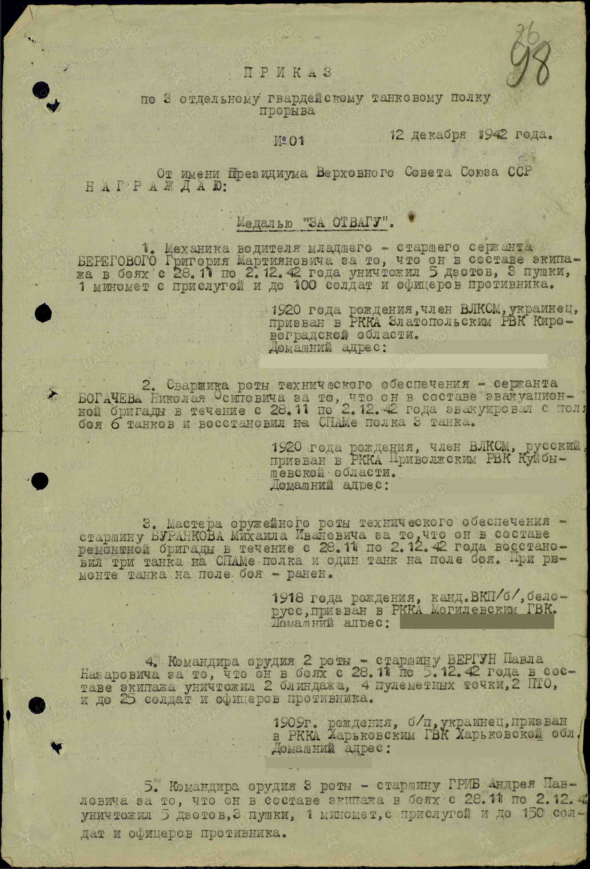 Родился в июле 1914 года в с. Мордово-Ишуткино. Сразу после начала Великой Отечественной войны был призван в армию и направлен в город Челябинск на девятимесячные курсы механика-водителя танка. После окончания курсов был направлен на фронт в качестве механика-водителя танка "Т-34" . Участвовал в Прохоровском танковом сражении, воевал на Курской дуге, освобождал Берлин. За время войны был контужен трижды и два раза тяжело ранен. Вернулся домой в звании гвардии старшина. Награжден медалью "За отвагу" (трижды), медалью "За боевые заслуги".