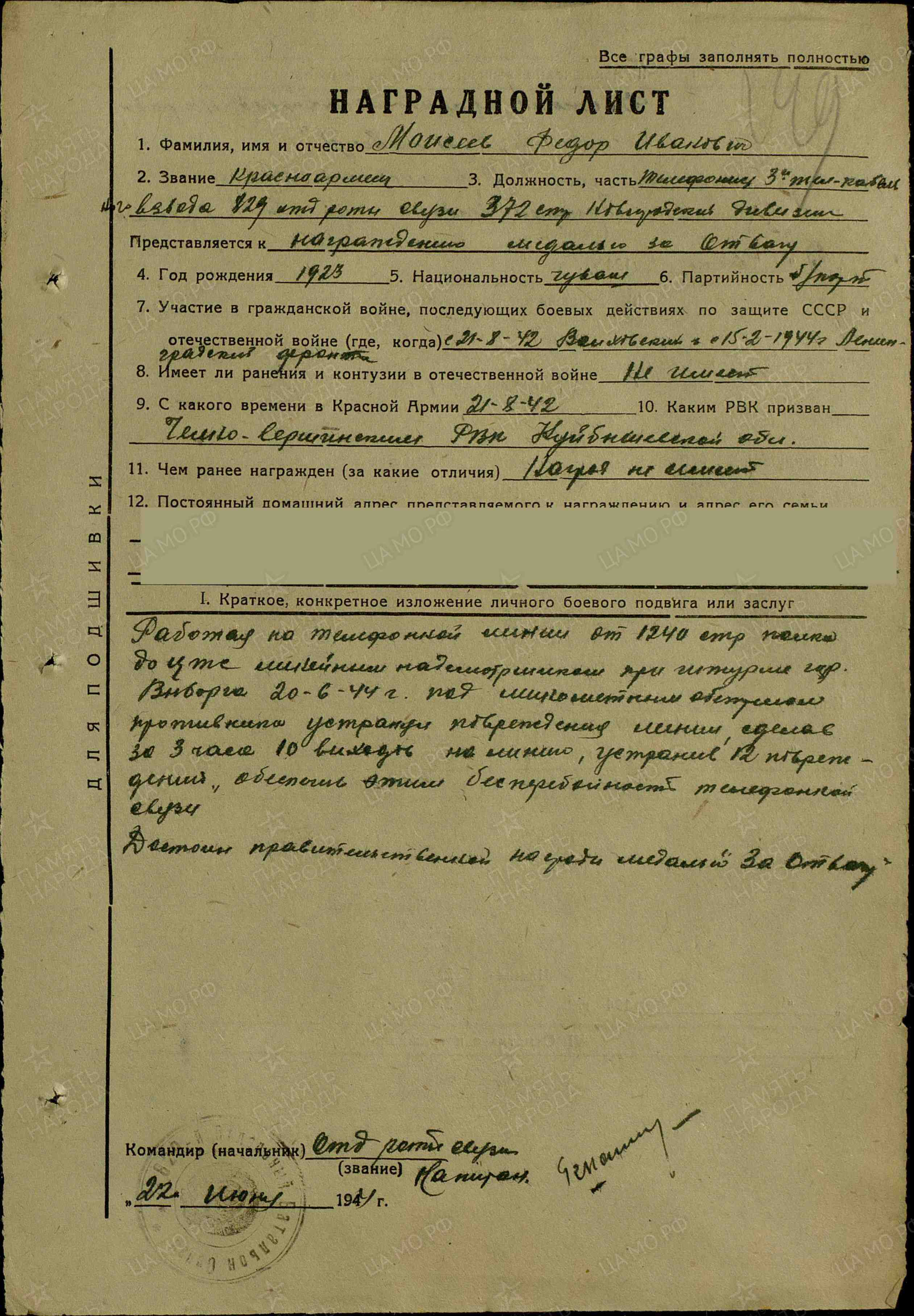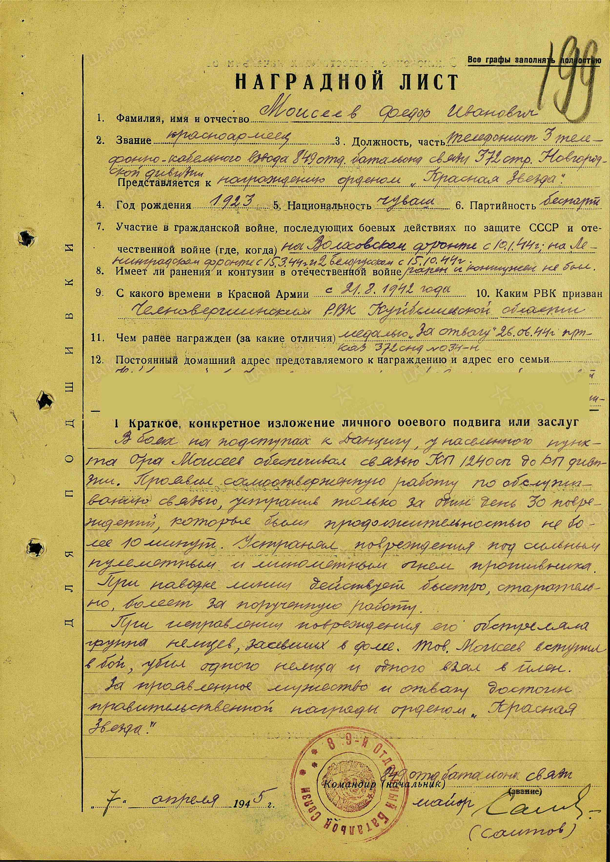 Материал предоставил сын, Моисеев Иван Федорович, с. Девлезеркино Челно-Вершинского района Самарской области