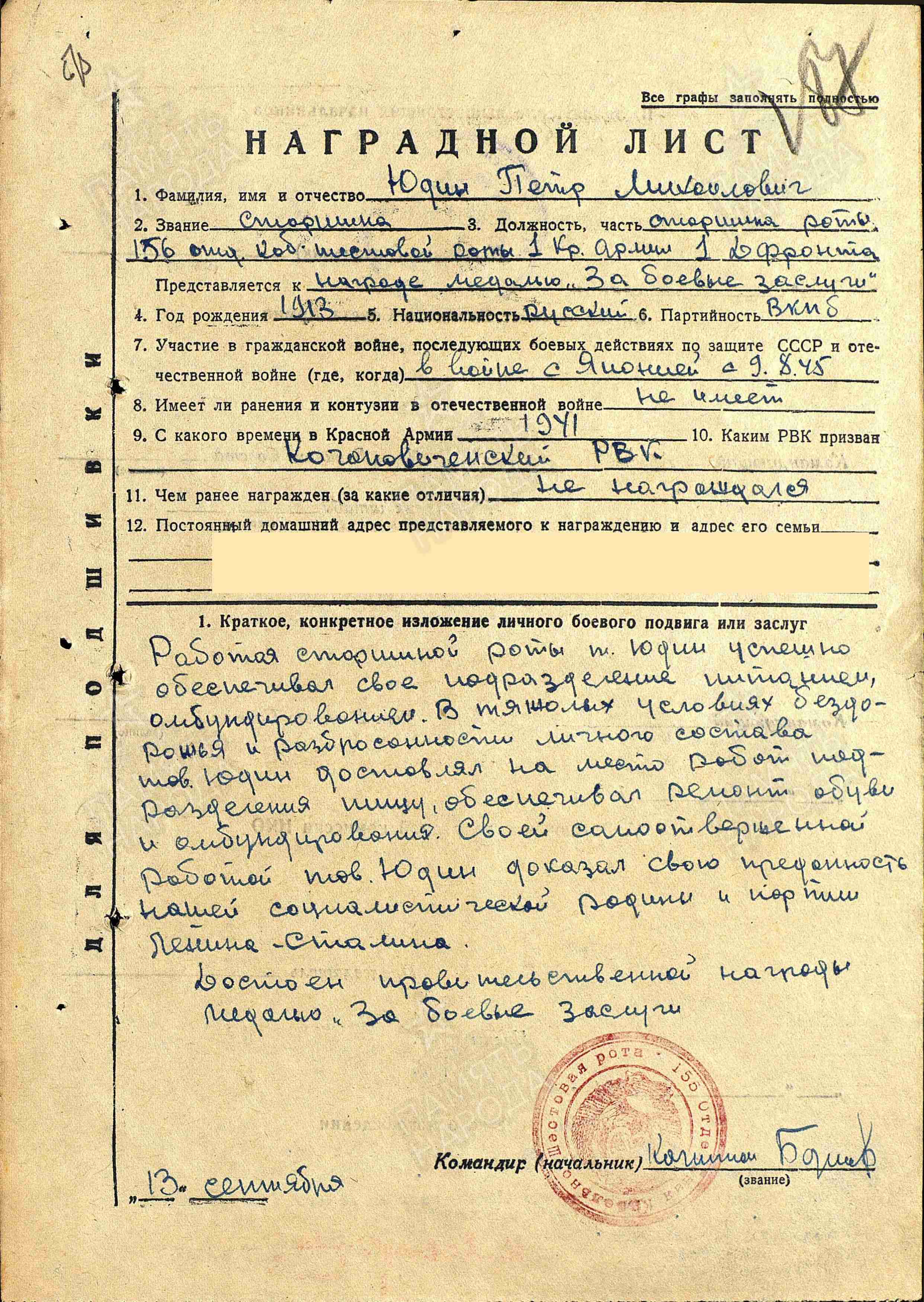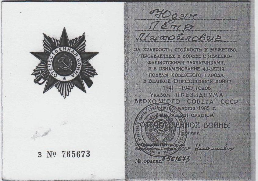 Информация и документы предоставлены сыном, Юдиным Анатолием Петровичем, с. Нижнепечерское Приволжского района Самарской области