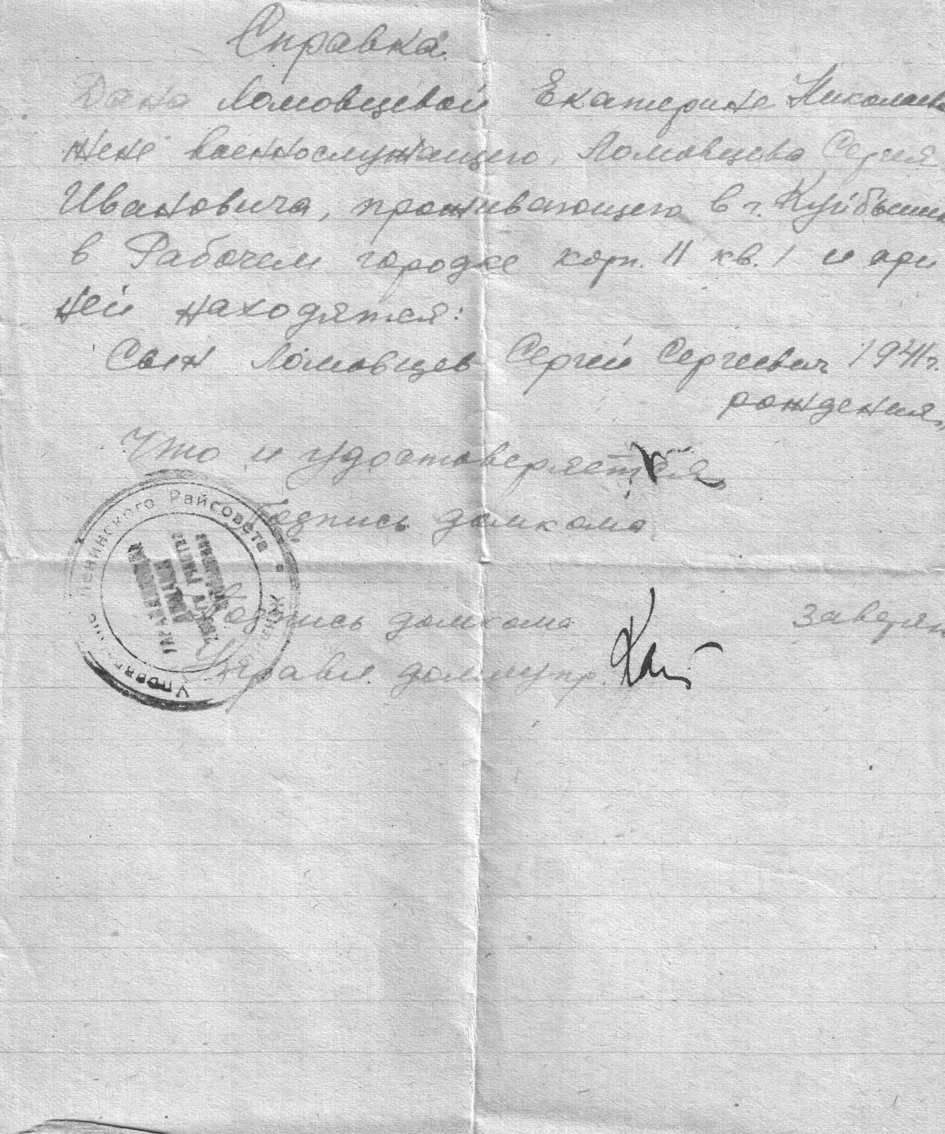 Екатерина Николаевна Тиханина (в замужестве Ломовцева) родилась 7 ноября 1922 года. Сергей Иванович Ломовцев родился в 1917 году в г. Ульяновске. Они поженились незадолго до войны, а в 1941 году у них родился сын Сергей. На одной из сохранившихся фотографий того времени: супруги Сулавины – друзья супругов Ломовцевых.